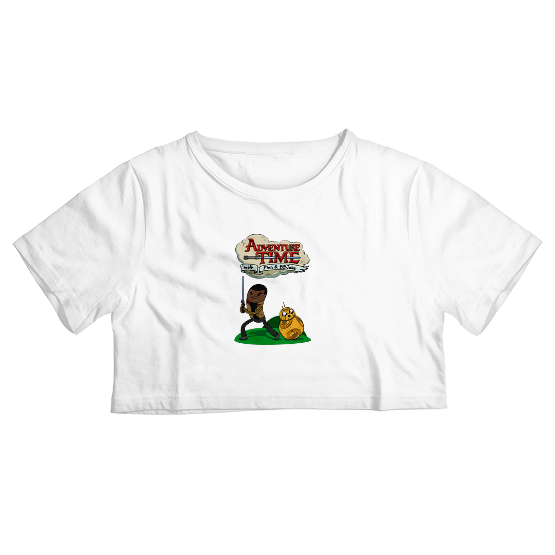 Prepare-se para uma aventura intergaláctica única com a estampa “Adventure Time”. Neste design exclusivo, os mundos colidem enquanto o adorado desenho Adventure Time encontra a icônica franquia Star Wars: O Despertar da Força. O personagem Finn, que é conhecido como o destemido humano ao lado de seu leal amigo, Jake, cão mágico, ganha uma reviravolta intergaláctica. O Finn de 'Adventure Time' e o Finn de 'Star Wars' se unem em uma homenagem inteligente, trazendo a coincidência de seus nomes à vida.