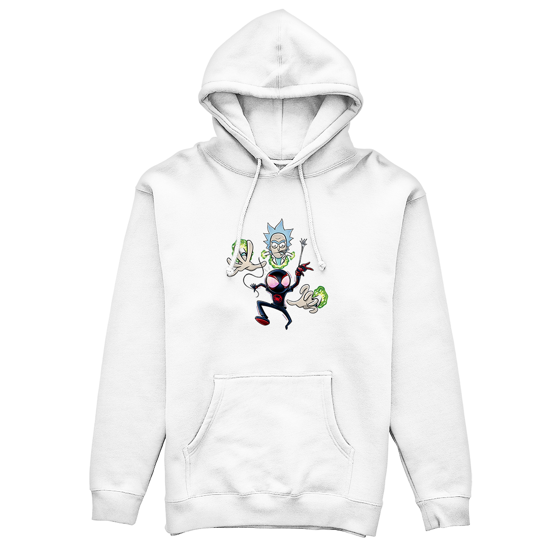 Explore o caos hilariante do multiverso com nossa estampa 'Aranhaverso'. Nesse crossover épico, Rick, da famosa série Rick and Morty, assume o papel do vilão que cria buracos dimensionais, enquanto Morty se transforma no nosso querido Homem Aranha, com uma pegada Miles Morales. A estampa captura a essência única de Rick e Morty, com Rick se tornando uma entidade multiversal gigante, tentando capturar Morty Aranha em uma dança caótica entre portais dimensionais. Mergulhe nesse universo divertido e vibrante que mistura o melhor de ambos os mundos, com traços inspirados na estética de Rick and Morty.