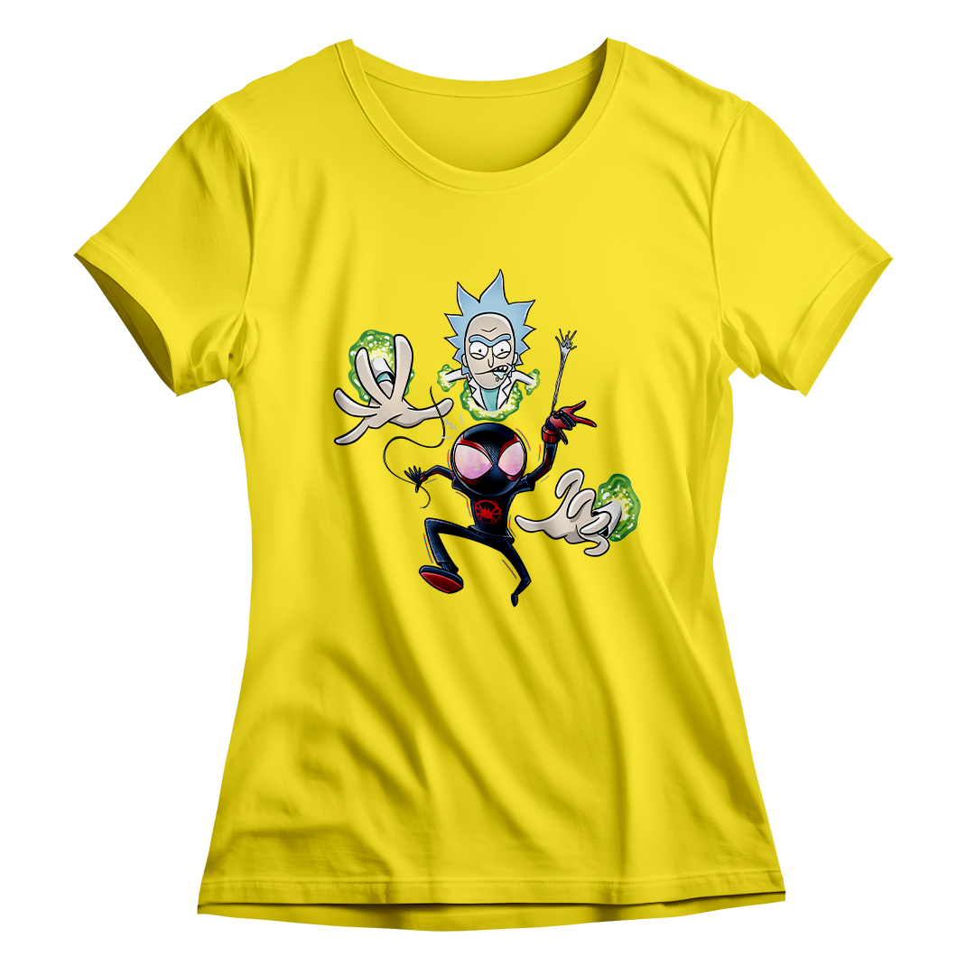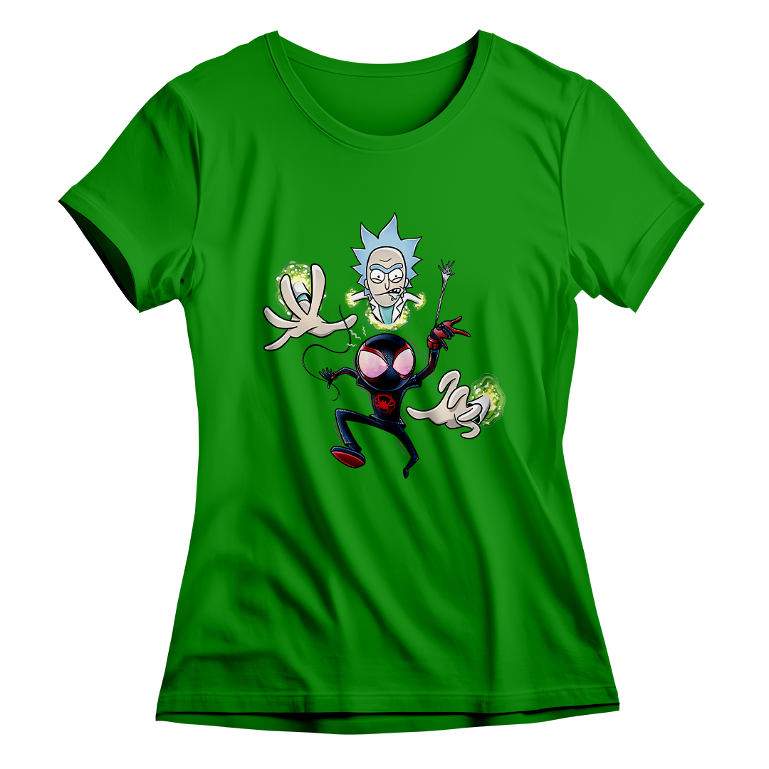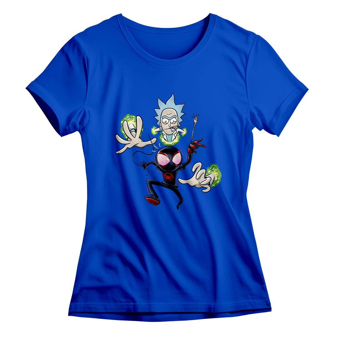 Explore o caos hilariante do multiverso com nossa estampa 'Aranhaverso'. Nesse crossover épico, Rick, da famosa série Rick and Morty, assume o papel do vilão que cria buracos dimensionais, enquanto Morty se transforma no nosso querido Homem Aranha, com uma pegada Miles Morales. A estampa captura a essência única de Rick e Morty, com Rick se tornando uma entidade multiversal gigante, tentando capturar Morty Aranha em uma dança caótica entre portais dimensionais. Mergulhe nesse universo divertido e vibrante que mistura o melhor de ambos os mundos, com traços inspirados na estética de Rick and Morty.