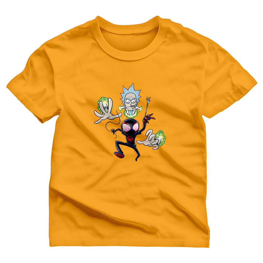 Explore o caos hilariante do multiverso com nossa estampa 'Aranhaverso'. Nesse crossover épico, Rick, da famosa série Rick and Morty, assume o papel do vilão que cria buracos dimensionais, enquanto Morty se transforma no nosso querido Homem Aranha, com uma pegada Miles Morales. A estampa captura a essência única de Rick e Morty, com Rick se tornando uma entidade multiversal gigante, tentando capturar Morty Aranha em uma dança caótica entre portais dimensionais. Mergulhe nesse universo divertido e vibrante que mistura o melhor de ambos os mundos, com traços inspirados na estética de Rick and Morty.