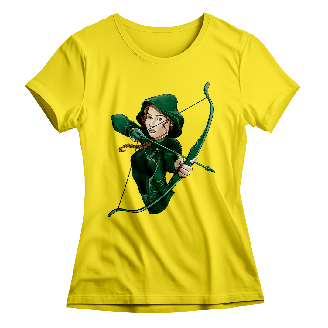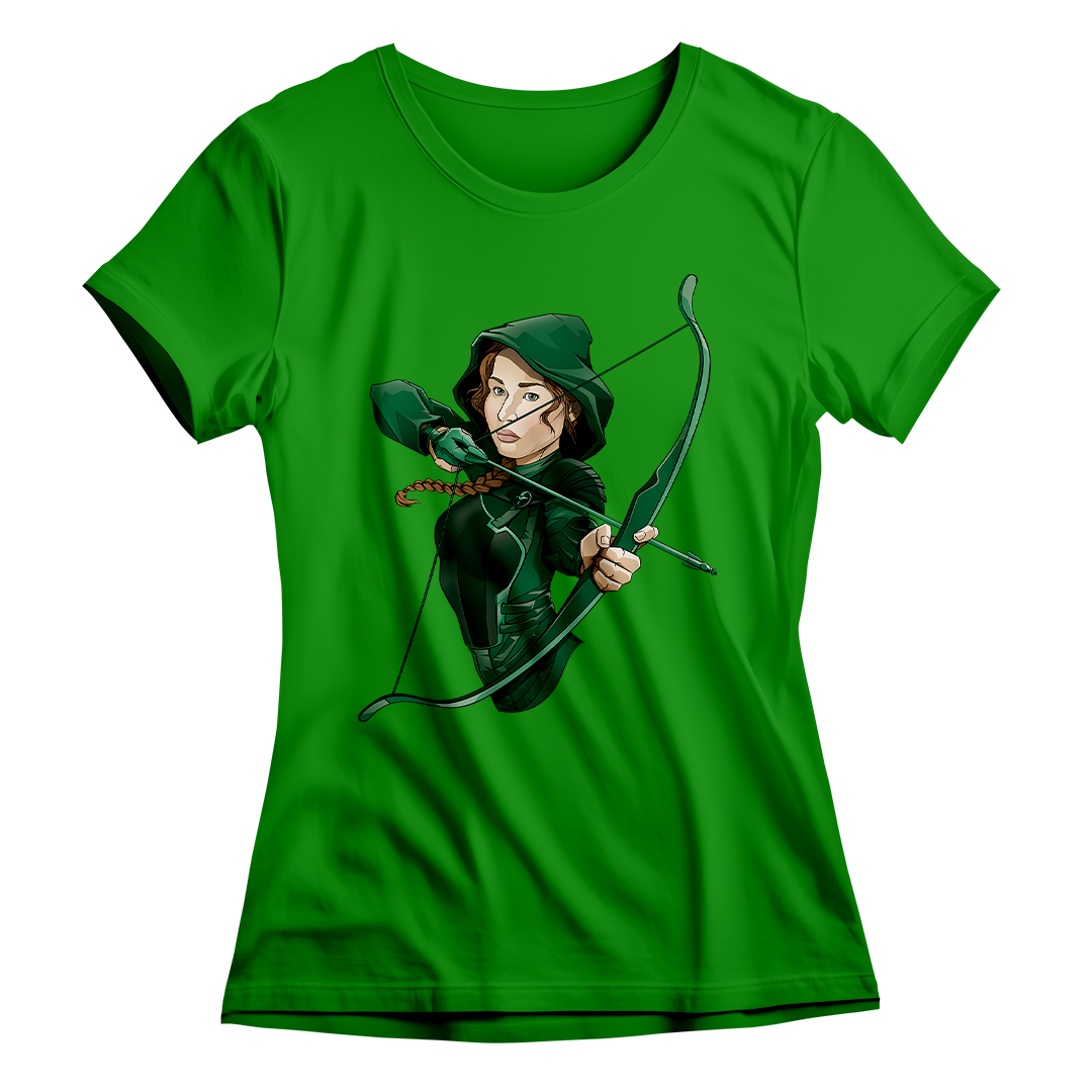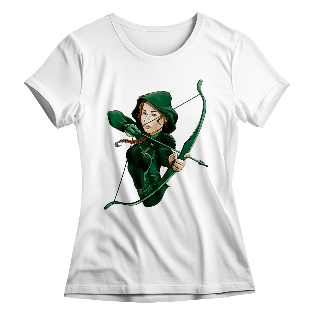 Prepare-se para uma fusão única e emocionante com a estampa 'Arrow' da Geek Win. Esta criação exclusiva traz o melhor de dois mundos, unindo o icônico Arqueiro Verde, também conhecido como Oliver Queen dos quadrinhos do Universo DC, com a destemida Katniss Everdeen da franquia 'Jogos Vorazes'. Ambos são mestres no uso do arco e flecha, e nesta estampa, eles se encontram em uma cena épica. Katniss, tradicionalmente vestida de vermelho, assume uma reviravolta verde com o icônico capuz do Arqueiro Verde, enquanto aponta seu arco e flecha com determinação. Esta criação criativa celebra a paixão por dois heróis arqueiros em um crossover que é um verdadeiro tesouro para os fãs da cultura geek. Adicione um toque de aventura e estilo à sua coleção com a estampa 'Arrow' da Geek Win.