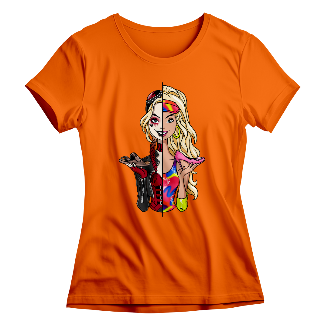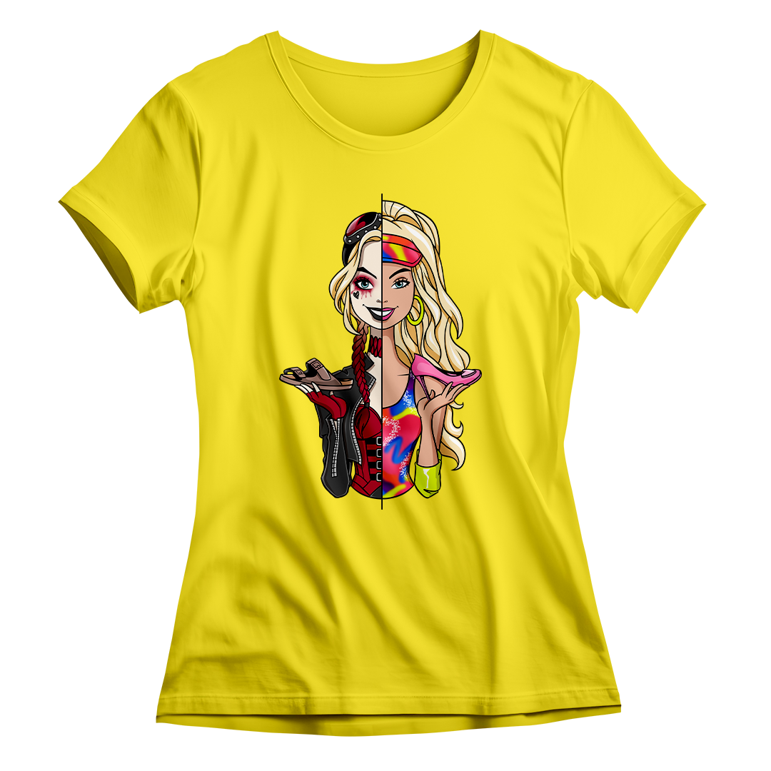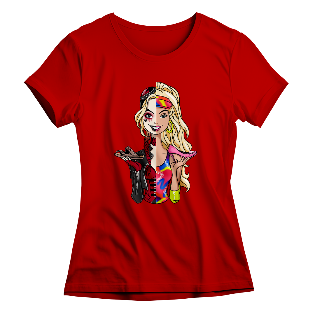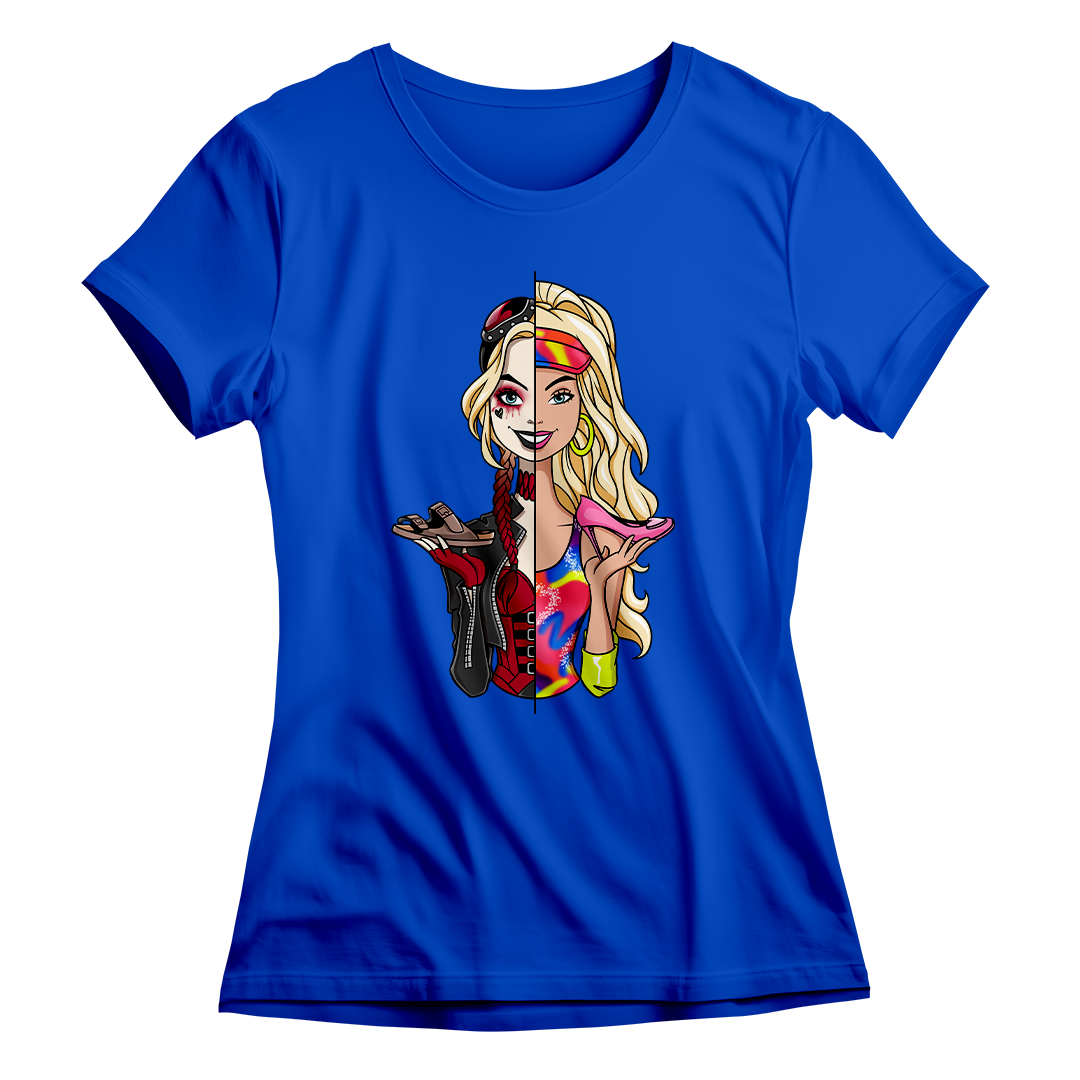 Explore o universo de dualidades com nossa estampa exclusiva "Barbie Quinn" da Geek Win! Esta fusão única entre a icônica Barbie e a audaciosa Harley Quinn, ambas interpretadas pela talentosa Margot Robbie, é uma jornada visual entre dois extremos. Divididas por uma linha vertical, Barbie e Quinn seguram calçados que simbolizam suas realidades. O salto elegante da Barbie, rosa e impecável, representa o mundo dos sonhos, enquanto a sandália caótica da Quinn revela a crueza da vida real. Uma metáfora entre a pílula azul e vermelha de Matrix, esta estampa celebra a dualidade feminina e a complexidade de escolhas, onde a moda e a reflexão se encontram e transcende o imaginário. Mergulhe nesse crossover inusitado que transcende o imaginário. #BarbieQuinn #Crossover #DualidadeFashion