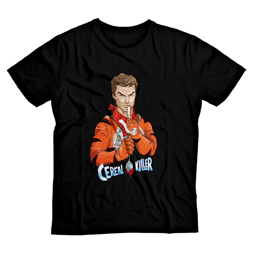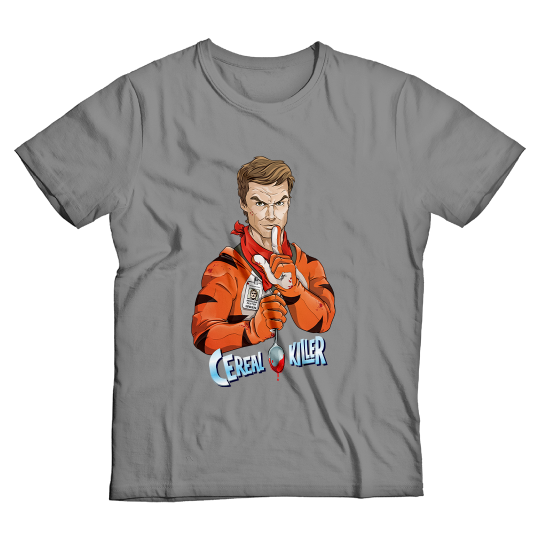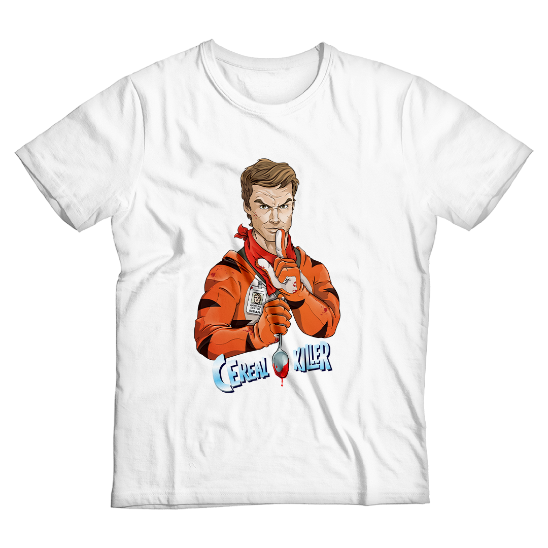 Fuja do comum com nossa estampa exclusiva "Cereal Killer". Neste crossover surpreendente, Dexter, o especialista forense que caça serial killers à noite, troca sua faca por uma colher de cereal ensanguentada, enquanto se veste como Tony, o Tigre, mascote dos Sucrilhos. O gesto silencioso com dedo nos lábios adiciona um toque misterioso. Uma fusão única entre o mundo sombrio de Dexter e o mascote matinal - um verdadeiro Cereal Killer! #Dexter #TonyTheTiger #CerealKiller #EstampaExclusiva #GeekWinStyle #CamisetaNerd
