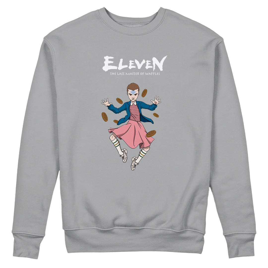 Explore o melhor dos dois mundos com a estampa 'Eleven' da Geek Win. Neste crossover inovador, mergulhamos no universo de 'Stranger Things' da Netflix e 'Avatar: A Lenda de Aang', também conhecido como 'Avatar: O Último Mestre do Ar'. A estampa captura o momento icônico em que a jovem Onze, conhecida como Eleven, é representada com sua aparência da primeira temporada, enquanto incorpora os traços distintivos de 'Avatar'. Aqui, vemos Eleven flutuando com a mesma postura de levitação que caracteriza Aang, um Dominador de Ar. A tatuagem de seta na cabeça de Aang é referenciada na testa de Eleven, enquanto detalhes como o sangue escorrendo pelo nariz de Eleven ao usar seus poderes de levitação são habilmente incorporados. A cena é complementada com waffles flutuando ao redor de Eleven, uma homenagem ao seu amor por waffles. O subtítulo da estampa, 'Eleven: The Last Master of Waffles', é uma divertida brincadeira com a tipografia do desenho 'Avatar', destacando a paixão única de Eleven. Celebre o encontro desses dois universos com estilo e criatividade com a estampa 'Eleven' da Geek Win.