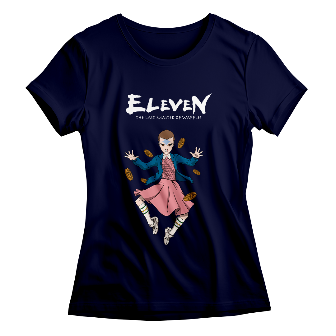 Explore o melhor dos dois mundos com a estampa 'Eleven' da Geek Win. Neste crossover inovador, mergulhamos no universo de 'Stranger Things' da Netflix e 'Avatar: A Lenda de Aang', também conhecido como 'Avatar: O Último Mestre do Ar'. A estampa captura o momento icônico em que a jovem Onze, conhecida como Eleven, é representada com sua aparência da primeira temporada, enquanto incorpora os traços distintivos de 'Avatar'. Aqui, vemos Eleven flutuando com a mesma postura de levitação que caracteriza Aang, um Dominador de Ar. A tatuagem de seta na cabeça de Aang é referenciada na testa de Eleven, enquanto detalhes como o sangue escorrendo pelo nariz de Eleven ao usar seus poderes de levitação são habilmente incorporados. A cena é complementada com waffles flutuando ao redor de Eleven, uma homenagem ao seu amor por waffles. O subtítulo da estampa, 'Eleven: The Last Master of Waffles', é uma divertida brincadeira com a tipografia do desenho 'Avatar', destacando a paixão única de Eleven. Celebre o encontro desses dois universos com estilo e criatividade com a estampa 'Eleven' da Geek Win.