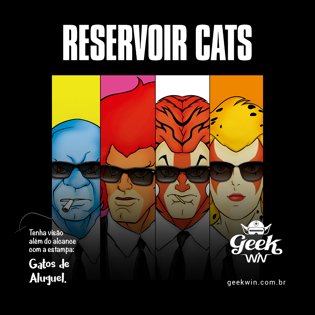 Adentre um universo inusitado com nossa estampa exclusiva "Gatos de Aluguel" da Geek Win. Em uma mistura surpreendente entre o clássico filme "Cães de Aluguel" de Quentin Tarantino e os amados Thundercats dos anos 80, apresentamos uma interpretação única. Panthro, Lion, Tygra e Cheetara assumem os papéis emblemáticos, recriando a atmosfera dos pôsteres originais. Embarque nessa jornada de nostalgia e criatividade, onde o mundo dos felinos se encontra com o universo cinematográfico de Tarantino. Descubra o estilo marcante dos Gatos de Aluguel e leve essa estampa exclusiva para casa agora! #GatosDeAluguel #GeekWinStyle #Thundercats #ReservoirDogs #CrossoverNerd