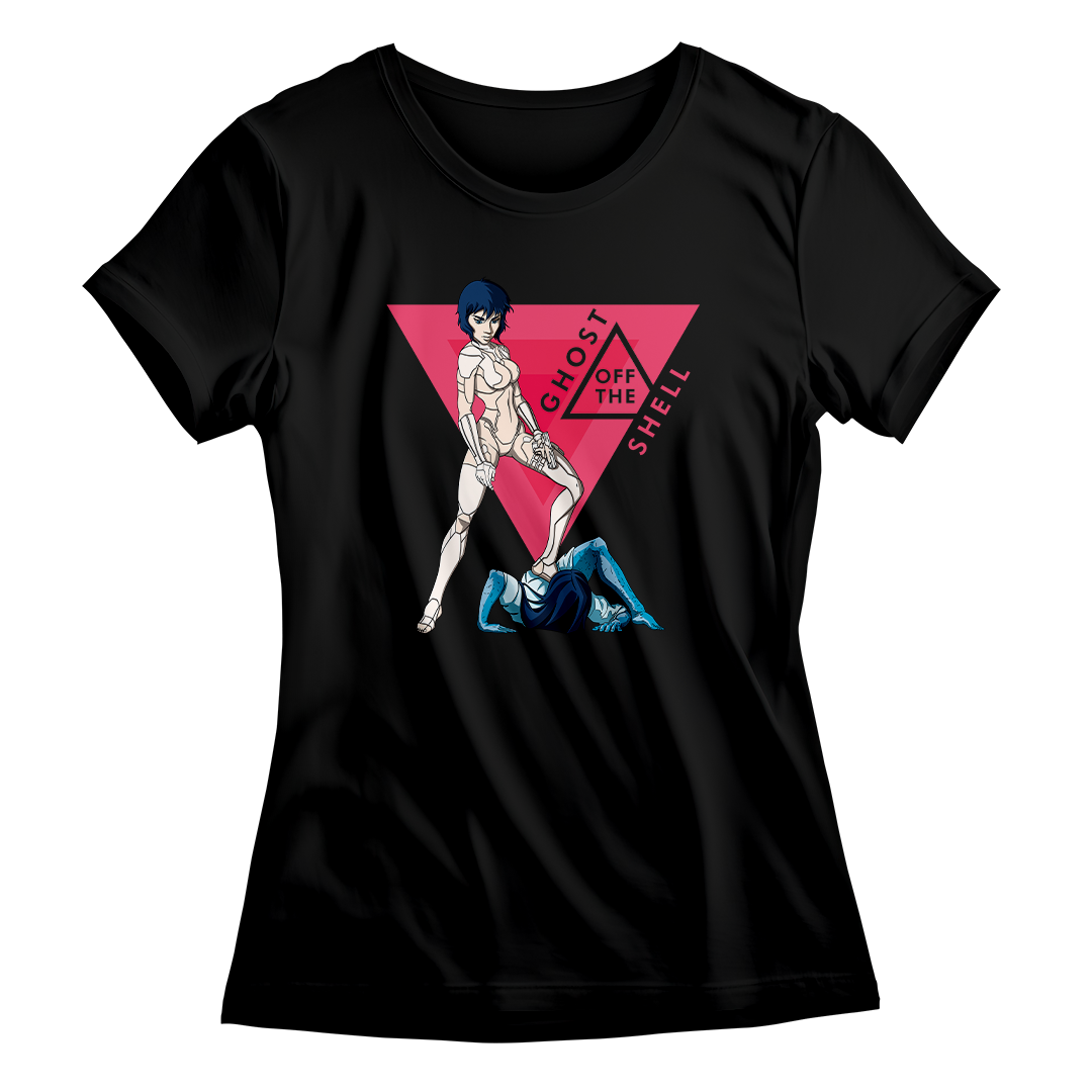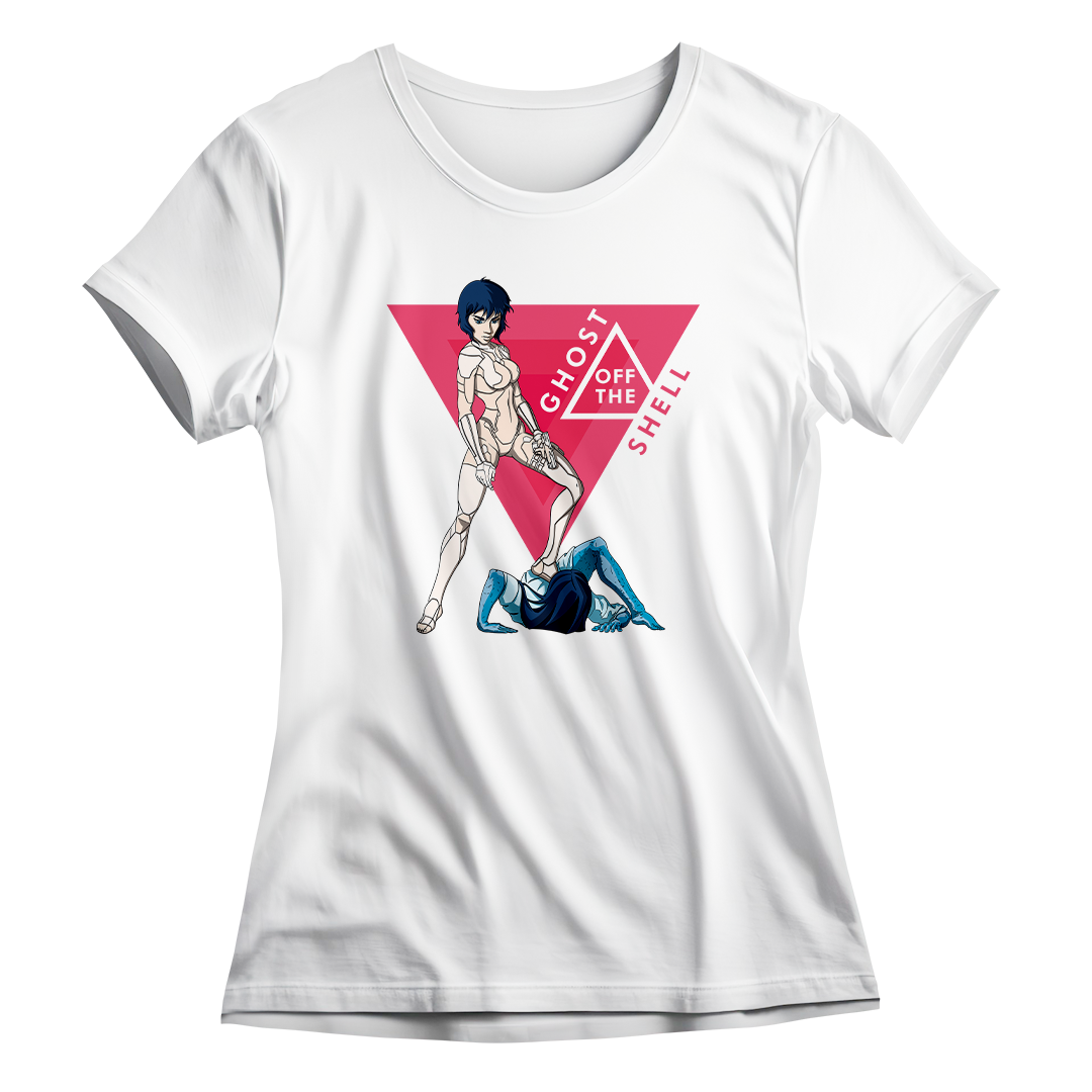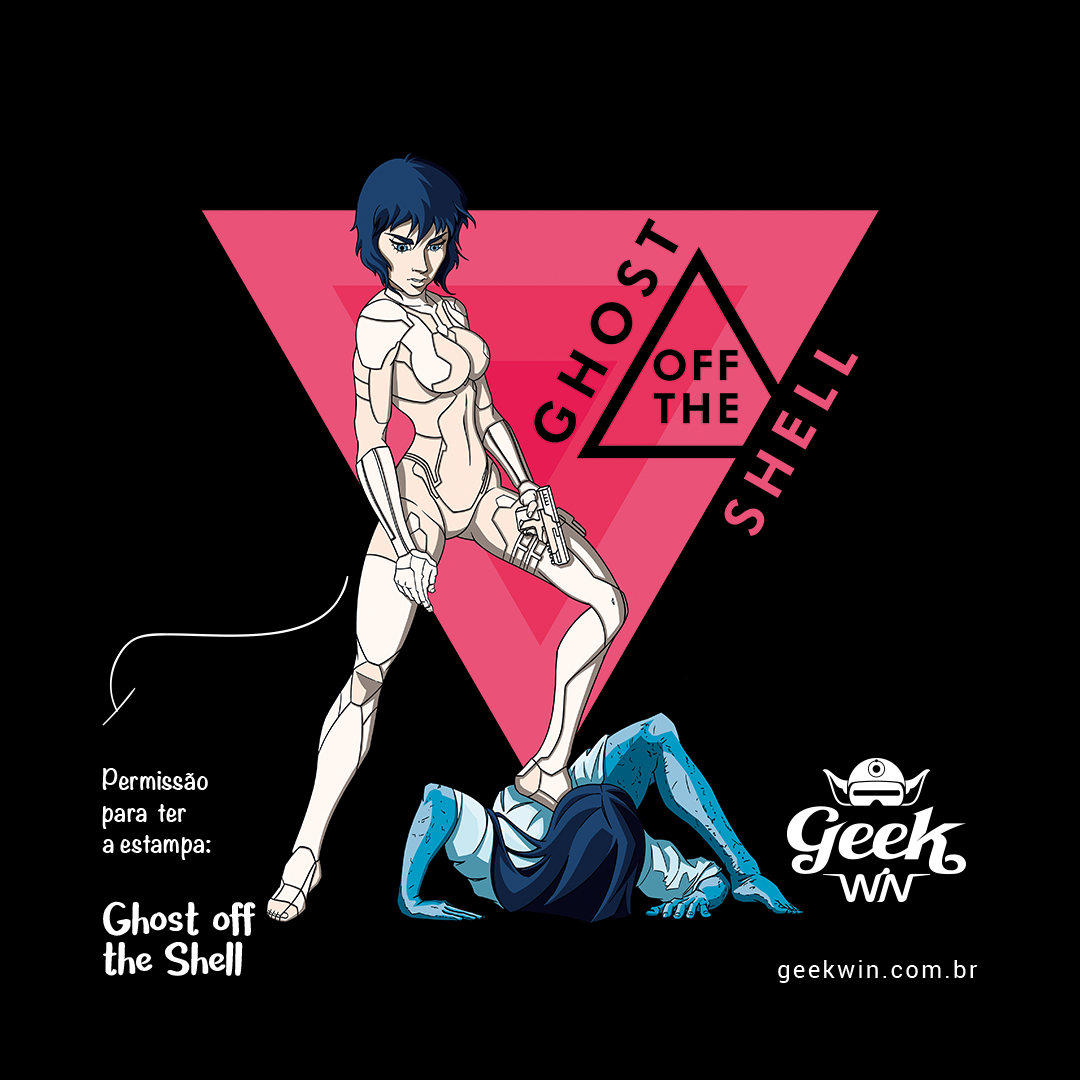 Dê as boas-vindas ao crossover surpreendente entre a icônica Motoko do filme Ghost in the Shell e o terror sinistro de Samara de O Chamado. Nesta estampa exclusiva, veja Motoko, interpretada por Scarlett Johansson, empunhando sua arma diante da assombração rastejante, Samara. Uma cena de confronto única que desafia as fronteiras entre o cyberpunk e o horror clássico. O lettering 'Ghost off the Shell' brinca com a essência do nome original, destacando a presença do fantasma, literalmente, fora da casca. Uma fusão intrigante que captura a essência de dois mundos distintos em uma composição única.