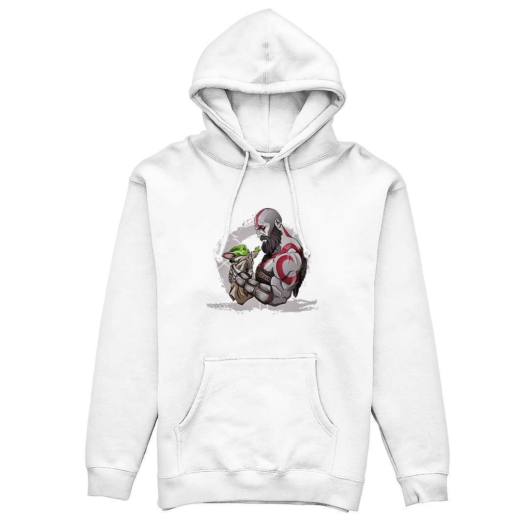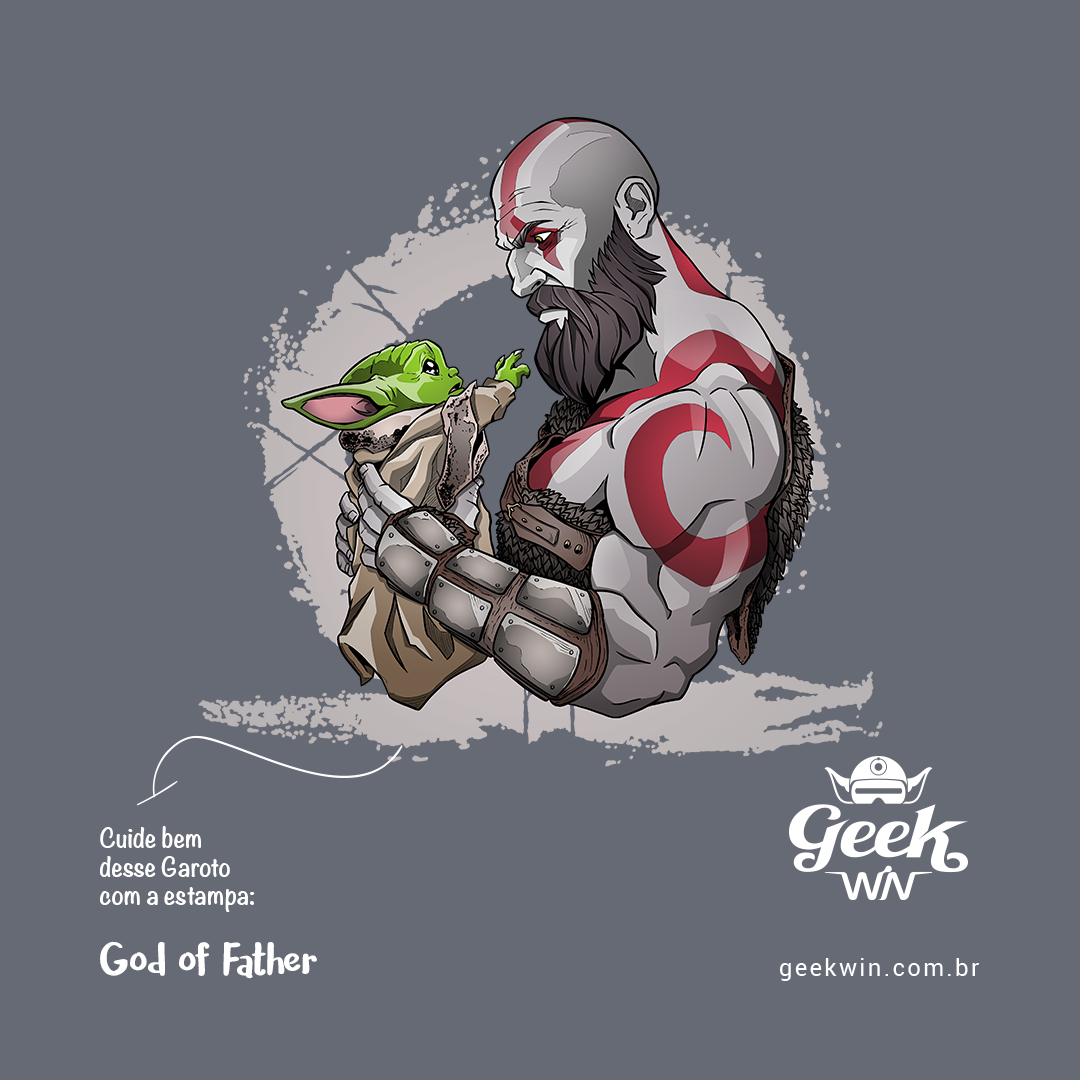 Celebre a jornada épica da paternidade com a estampa exclusiva "God of Father". Neste design único, homenageamos dois pais solteiros extraordinários - Kratos, o guerreiro espartano de God of War, e Mando, o intrépido Mandaloriano da série Star Wars: The Mandalorian. Ambos compartilham a peculiaridade de se referirem carinhosamente a seus filhos como "Garoto". Na ilustração, Kratos é retratado de perfil, segurando ternamente Grogu, o adorável membro da raça do mestre Yoda. O olhar fraterno entre pai e "Garoto" é capturado com emoção, proporcionando uma fusão única entre esses dois universos tão distintos. Explore a magia da paternidade nesse crossover afetuoso, onde as histórias se entrelaçam para criar uma conexão emocional que transcende os mundos de God of War e Star Wars.