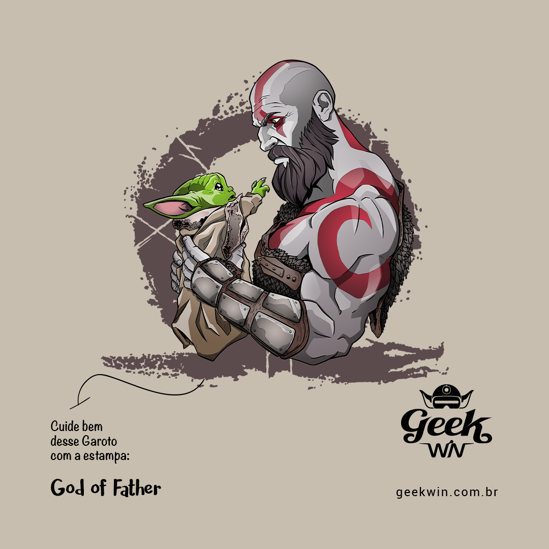 Celebre a jornada épica da paternidade com a estampa exclusiva "God of Father". Neste design único, homenageamos dois pais solteiros extraordinários - Kratos, o guerreiro espartano de God of War, e Mando, o intrépido Mandaloriano da série Star Wars: The Mandalorian. Ambos compartilham a peculiaridade de se referirem carinhosamente a seus filhos como "Garoto". Na ilustração, Kratos é retratado de perfil, segurando ternamente Grogu, o adorável membro da raça do mestre Yoda. O olhar fraterno entre pai e "Garoto" é capturado com emoção, proporcionando uma fusão única entre esses dois universos tão distintos. Explore a magia da paternidade nesse crossover afetuoso, onde as histórias se entrelaçam para criar uma conexão emocional que transcende os mundos de God of War e Star Wars.