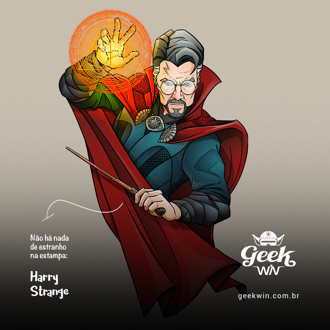 Explore a mágica fusão entre o Dr. Strange e Harry Potter com a estampa "Harry Strange" da Geek Win. Viaje pelo multiverso enquanto o mago dos quadrinhos encontra o bruxo favorito dos livros em um crossover único. Descubra mais sobre o neurocirurgião que se tornou mestre das artes místicas e o jovem bruxo que desafiou Lord Voldemort. Uma criação inspirada na sugestão brilhante de Aline Bringel, que ganhou 30% de desconto na sua camiseta ideal. Participe do projeto "Sua Ideia no Peito" e faça parte da magia Geek Win! #HarryStrange #GeekWinMagic #CrossoverMágico #DrStrange #HarryPotter #MagiaGeek #SuaIdeiaNoPeito