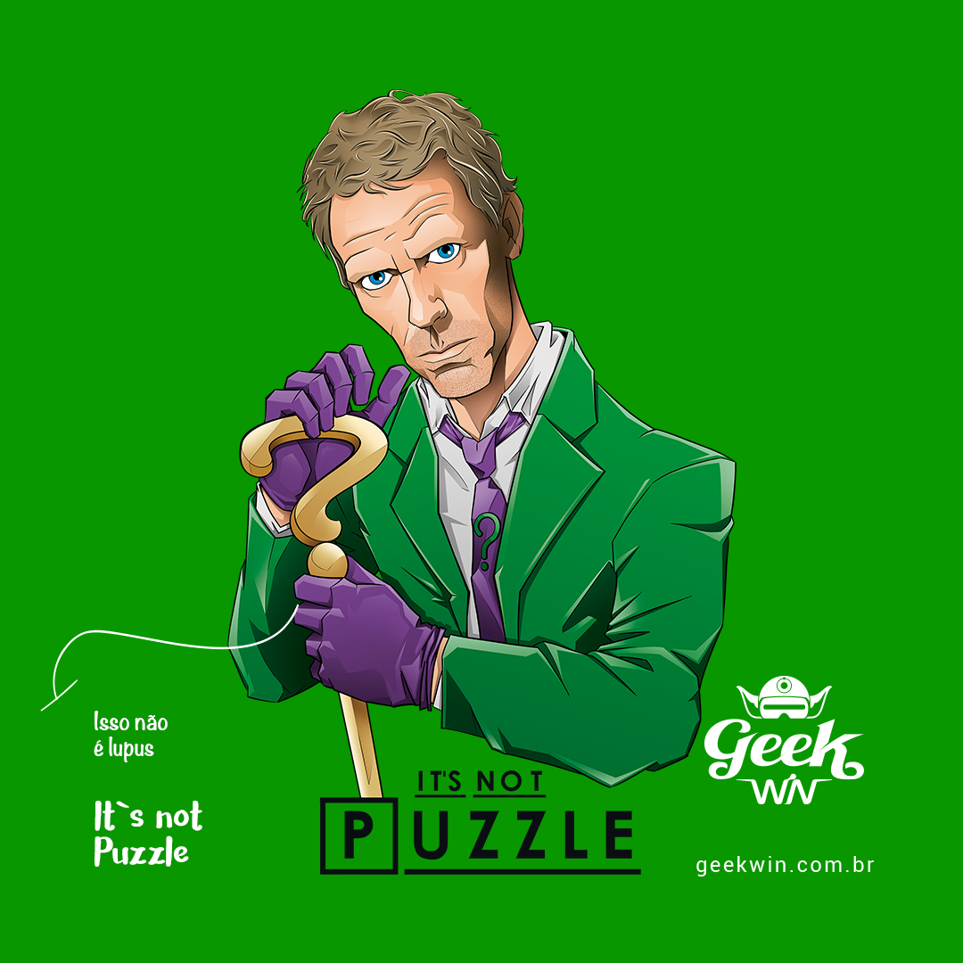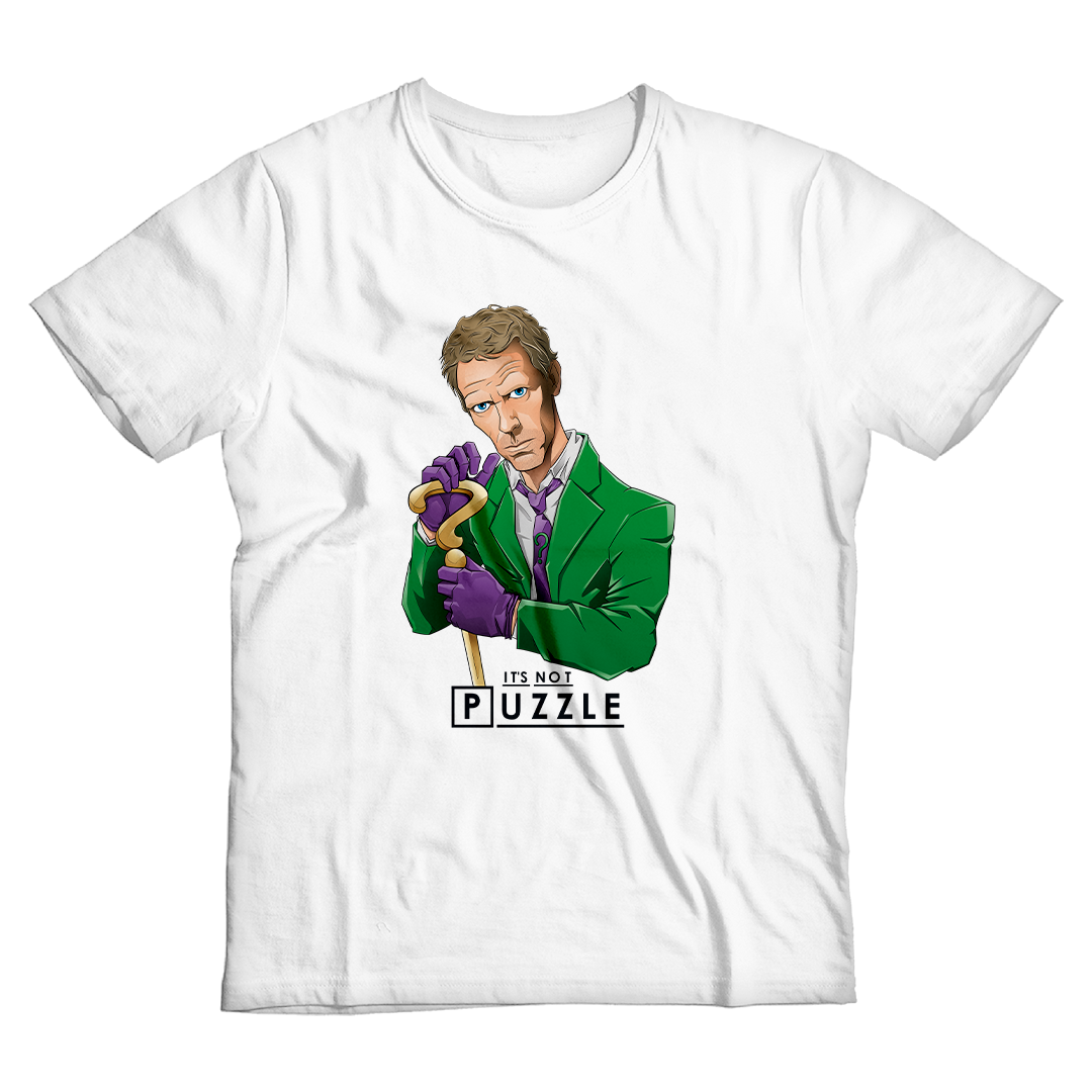Em um intrigante crossover, testemunhe Dr. House, o genial e sarcástico médico, encarnando a mente enigmática do Charada, o icônico vilão de Batman. Com sua característica bengala de interrogação, House desafia não apenas diagnósticos médicos, mas também os próprios enigmas do Charada. Nesta estampa única, o bordão famoso de House - 'It's not lupus' - ganha uma reviravolta, transformando-se em 'It's not Puzzle,' uma alusão inteligente aos quebra-cabeças do Charada. Uma fusão intrigante de dois universos, onde o médico e o vilão se entrelaçam em um enigma próprio.