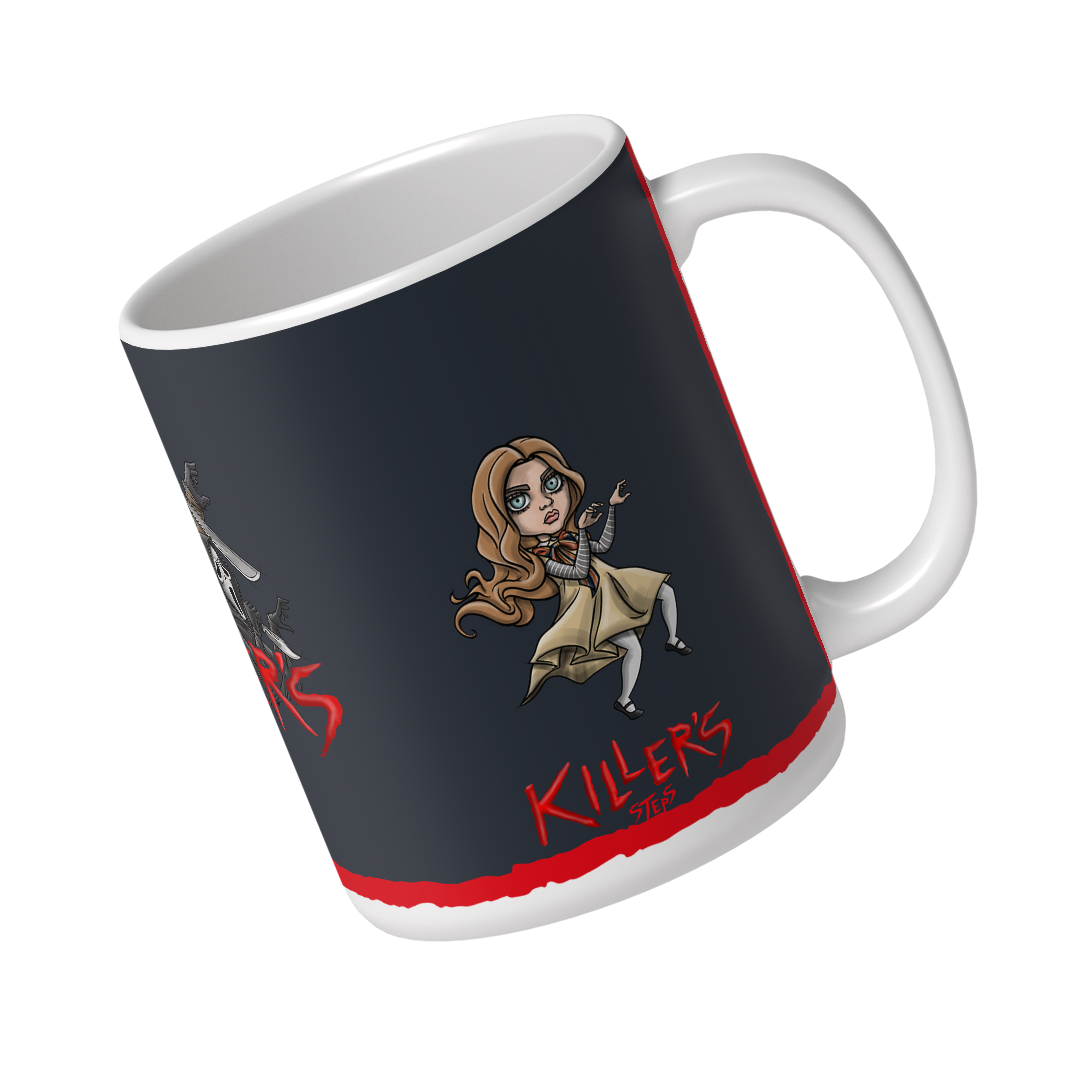 Nossa estampa de Halloween apresenta um crossover surpreendente entre Wandinha da série de Tim Burton e Megan do filme de James Wan, dançando a coreografia de "Thriller" de Michael Jackson no centro da cena. Enquanto as novas adições à cultura do terror se divertem com a dança, os ícones clássicos, como Freddy Krueger, Jason e Ghost Face, estão habilmente incorporados à coreografia, proporcionando uma reviravolta emocionante. Com um lettering destacando "Killer's", essa estampa única combina elementos de diferentes gerações de personagens do terror, criando uma peça de moda distintiva para entusiastas da cultura pop e do horror.