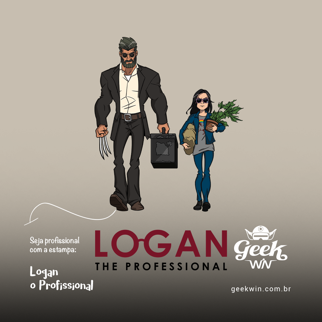 Em uma jornada única, a estampa "Logan" nos leva a um crossover emocionante entre os universos de X-Men e o filme "O Profissional". Logan, vestido como o icônico Léon, caminha ao lado de sua filha clone, X-23, que personifica a doce Mathilda. A cena nostálgica é reimaginada com maestria, destacando a conexão única entre esses personagens. Uma fusão de mundos que certamente encantará os fãs de ambos. Envolva-se nessa aventura única e vista-se com estilo geek e cinematográfico.
