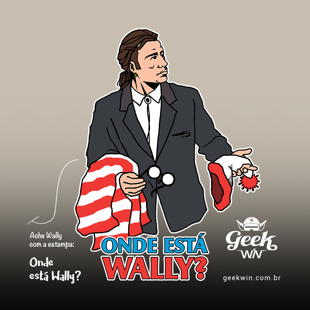 Desvende essa estampa única, unindo o clássico desafio de encontrar Wally com a expressão perdida de Vincent Vega de Pulp Fiction. Vincent parece estar em uma busca intensa por alguém, olhando para os lados, gesticulando com os braços, e carregando os distintivos óculos, camisa e gorro listrados de Wally. Uma divertida fusão de culturas pop para os amantes de desafios e referências únicas! #OndeEstáWally #PulpFiction #CrossoverGeek #EstampaExclusiva #VincentVega #Wally #DesenhoClássico #MemePop #ModaGeek #CamisetaPersonalizada #EncontreWally