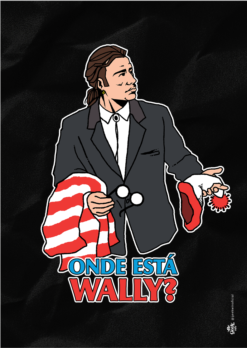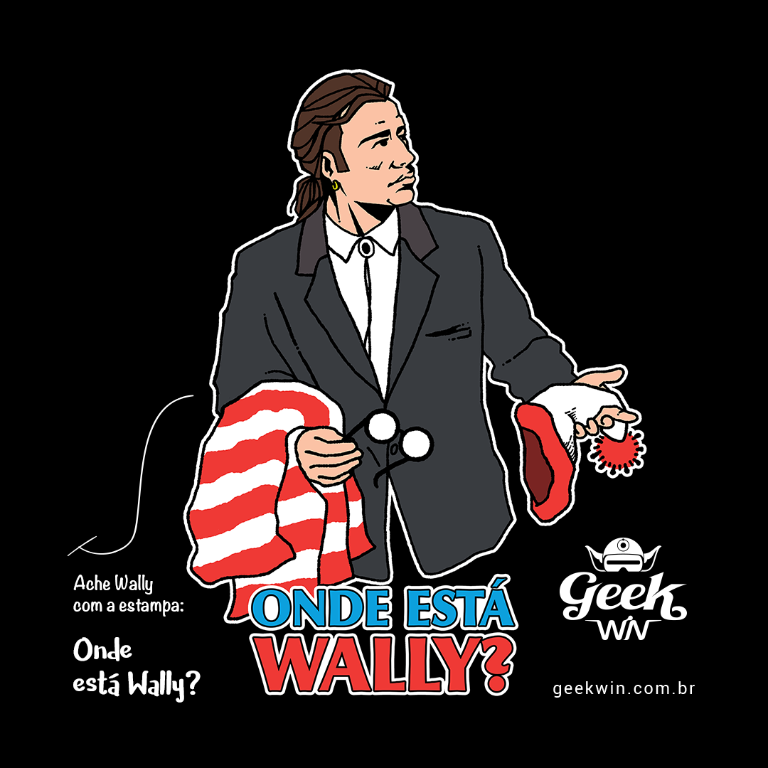 Desvende essa estampa única, unindo o clássico desafio de encontrar Wally com a expressão perdida de Vincent Vega de Pulp Fiction. Vincent parece estar em uma busca intensa por alguém, olhando para os lados, gesticulando com os braços, e carregando os distintivos óculos, camisa e gorro listrados de Wally. Uma divertida fusão de culturas pop para os amantes de desafios e referências únicas! #OndeEstáWally #PulpFiction #CrossoverGeek #EstampaExclusiva #VincentVega #Wally #DesenhoClássico #MemePop #ModaGeek #CamisetaPersonalizada #EncontreWally