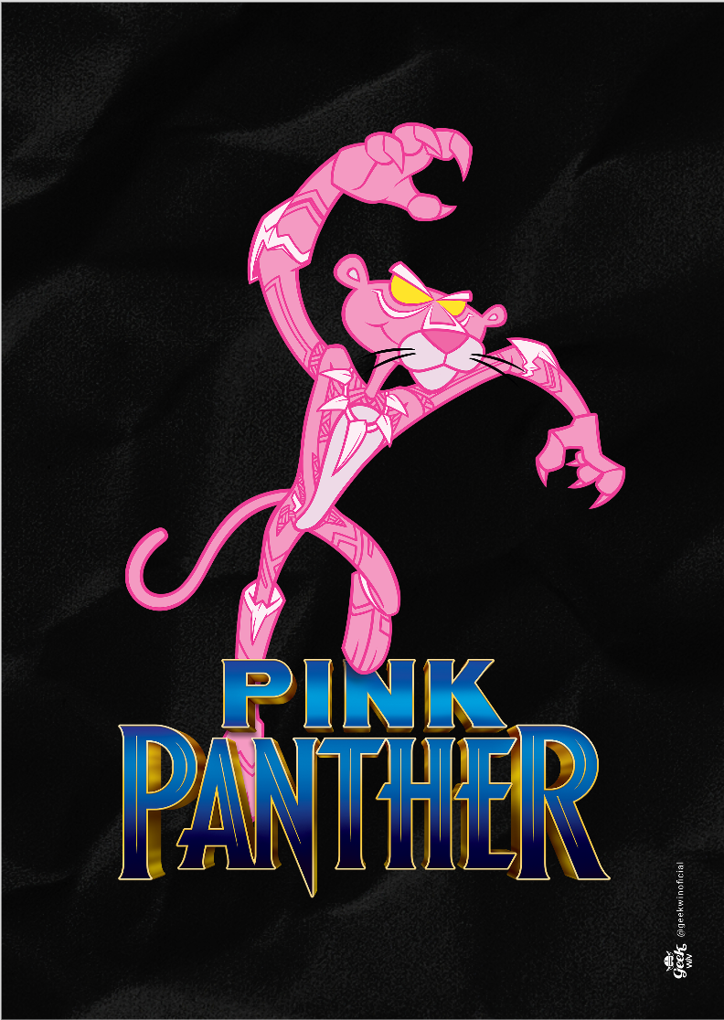 Desperte seu lado selvagem com a estampa "Pink Panther" da Geek Win. Nesse crossover exclusivo, a icônica Pantera Cor de Rosa abraça a vibração do Pantera Negra da Marvel, vestindo seu manto rosa em um salto elegante. Descubra a elegância com um toque de comédia nessa fusão única. #PinkPanther #CrossoverGeek #EstampaExclusiva #PanteraCordeRosa #BlackPanther #GeekWinStyle #CamisetaNerd