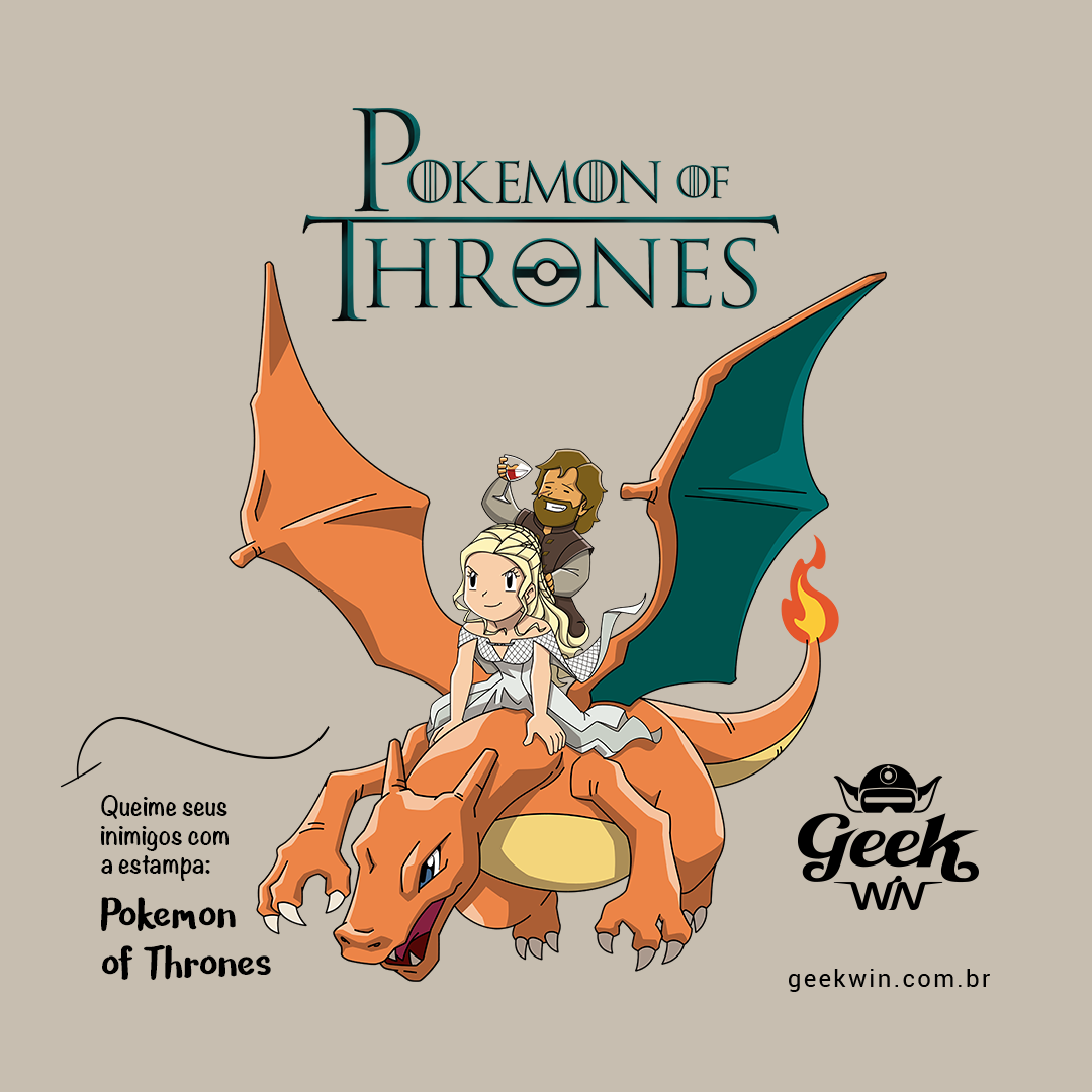 Desfrute da aventura épica de Pokemon of Thrones! Nesta estampa única, Daenerys Targaryen assume o papel de Ash, montando majestosamente o poderoso Charizard, seu dragão voador. Uma adorável reviravolta ocorre quando Tyrion Lannister, em sua estatura peculiar, se junta à jornada como o parceiro de confiança, fazendo uma cena clássica repleta de surpresas e referências. Embarque nessa mistura épica de duas séries icônicas enquanto exploramos o mundo emocionante de Game of Thrones com um toque de Pokémon. #PokemonofThrones #CrossoverÉpico #GameofThrones #PokemonAdventure #EstampaGeek #AventuraAnimada #DaenerysTargaryen #TyrionLannister #ModaGeek #AshandCharizard