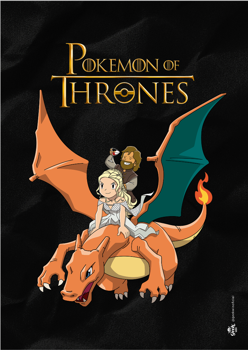 Desfrute da aventura épica de Pokemon of Thrones! Nesta estampa única, Daenerys Targaryen assume o papel de Ash, montando majestosamente o poderoso Charizard, seu dragão voador. Uma adorável reviravolta ocorre quando Tyrion Lannister, em sua estatura peculiar, se junta à jornada como o parceiro de confiança, fazendo uma cena clássica repleta de surpresas e referências. Embarque nessa mistura épica de duas séries icônicas enquanto exploramos o mundo emocionante de Game of Thrones com um toque de Pokémon. #PokemonofThrones #CrossoverÉpico #GameofThrones #PokemonAdventure #EstampaGeek #AventuraAnimada #DaenerysTargaryen #TyrionLannister #ModaGeek #AshandCharizard