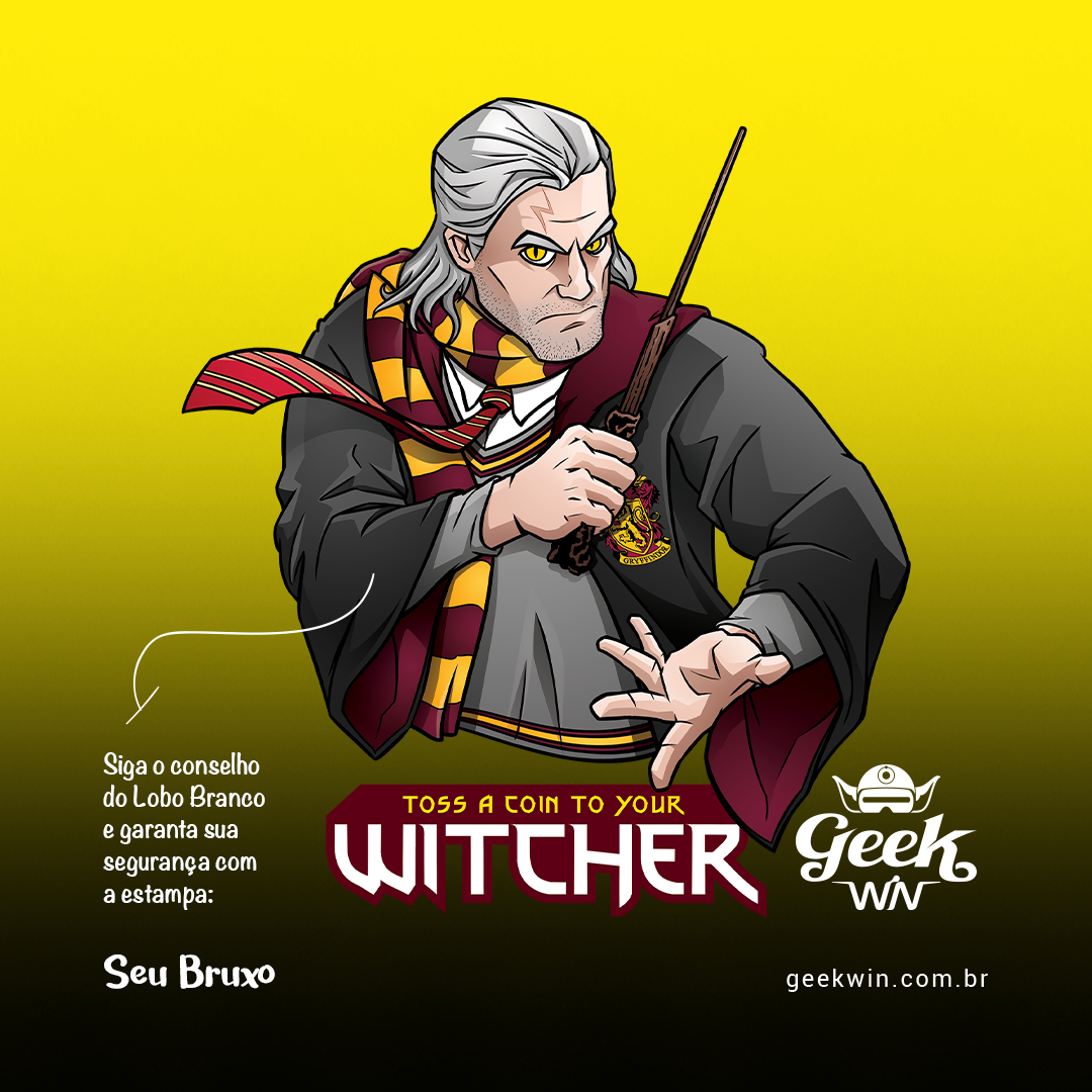 Explore a magia e o humor em nossa estampa exclusiva "Seu Bruxo". Nesse crossover épico, Geralt de Rivia, o Lobo Branco interpretado por Henry Cavill, da série The Witcher, e o icônico Harry Potter colidem em um encontro mágico. Veja Geralt, caracterizado com a energia de Grifinória, ameaçando usar a varinha mágica de Harry, enquanto ostenta a lendária cicatriz do bruxo mais famoso de Hogwarts. A expressão intrigante de Geralt estende a mão, como se buscasse algo mais do que feitiços, (um trocado), kkk. Mergulhe nesse encontro inusitado de bruxos e vista-se com essa fusão mágica! #BruxoGeek #GeraltVsHarry #CrossoverMágico #GeekWinStyle