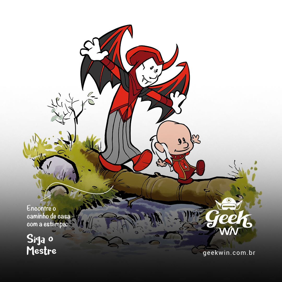 Explore a nostalgia com a estampa exclusiva "Siga o Mestre", um incrível crossover entre a clássica cena de Calvin e Haroldo atravessando um riacho e os icônicos personagens do desenho Caverna do Dragão. Calvin assume o papel do enigmático Mestre dos Magos, enquanto Haroldo se transforma no misterioso Vingador. Celebre a união desses mundos em uma estampa que captura a essência da aventura e da imaginação. Encontre a magia em cada detalhe enquanto esses personagens tão queridos se unem de uma maneira única e cativante. Adquira já a sua e mergulhe nessa jornada inesquecível! #SigaOMestre #CavernaDoDragão #CalvinEHaroldo #NostalgiaGeek #EstampaExclusiva #DungeonsAndDragons