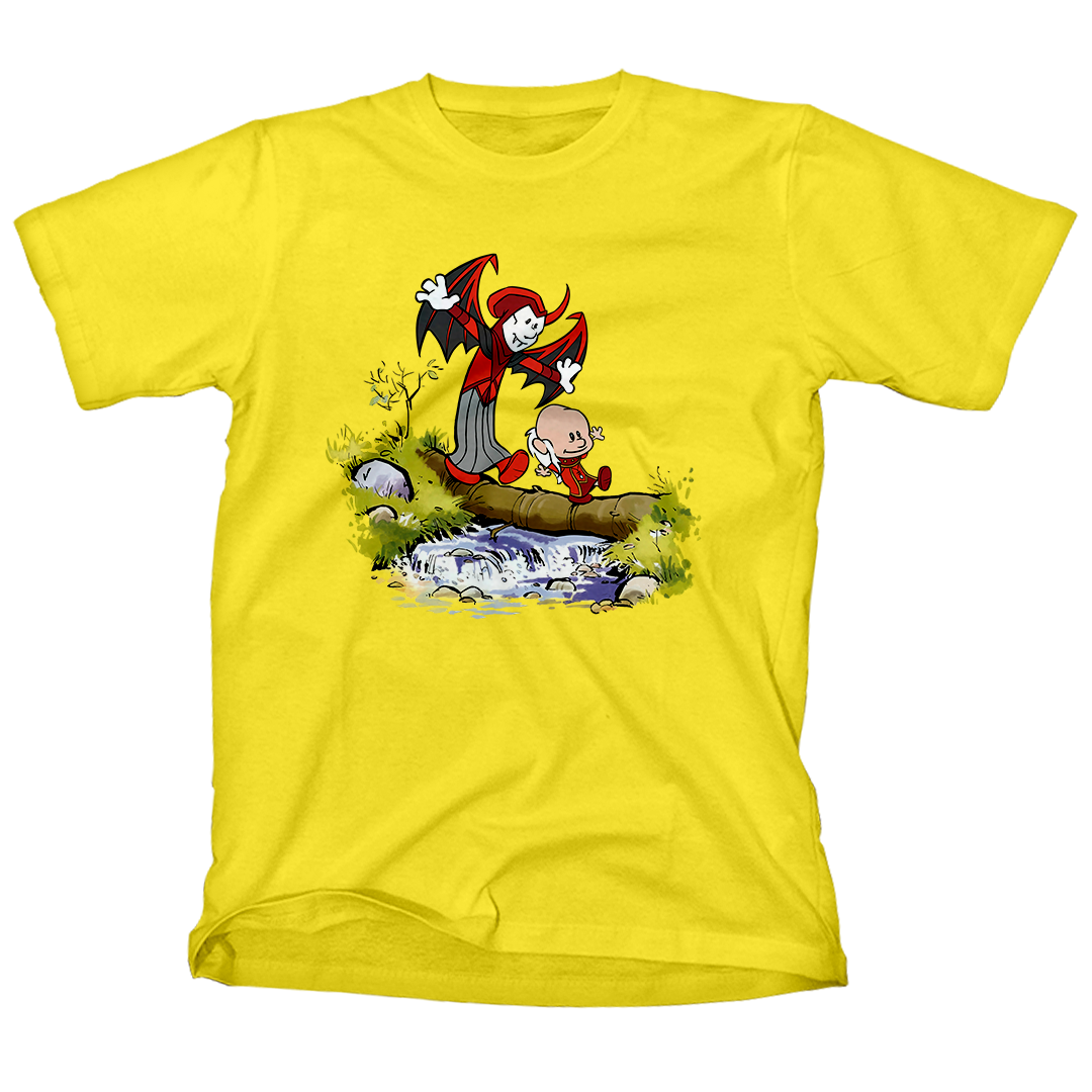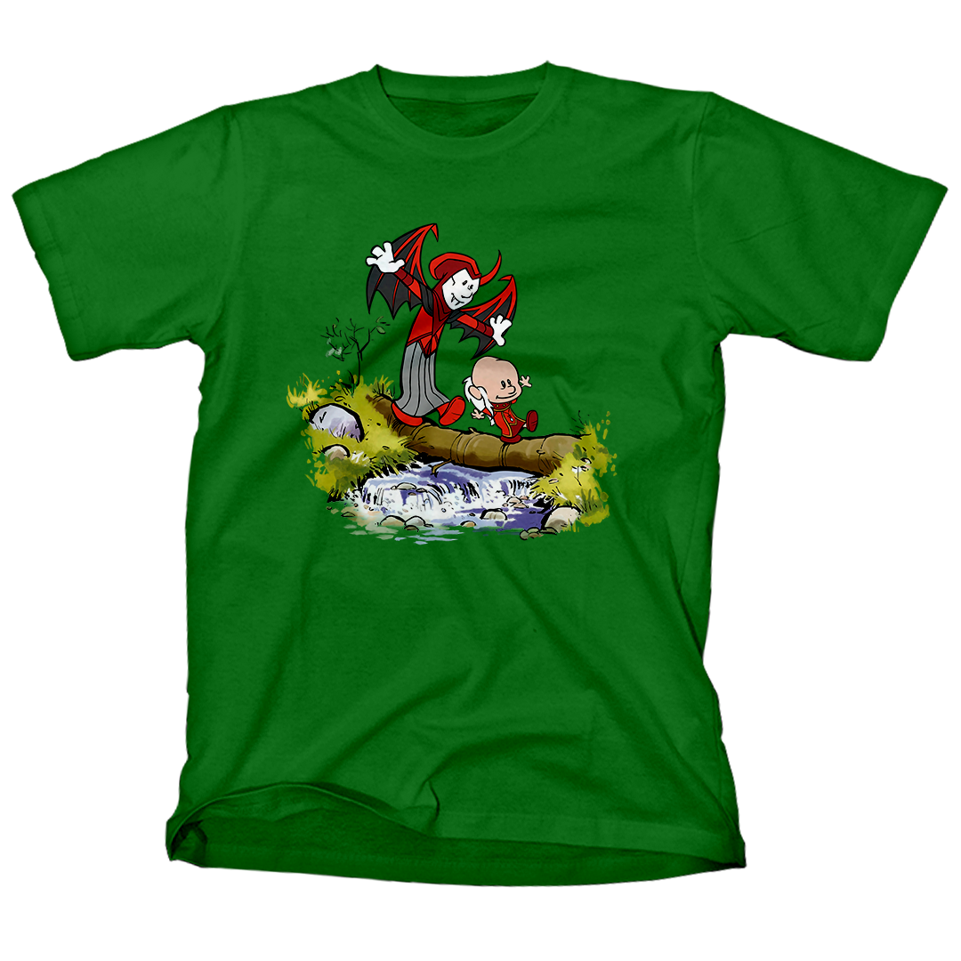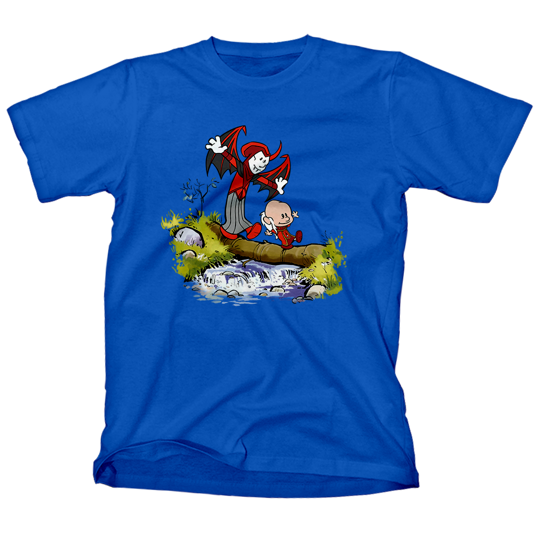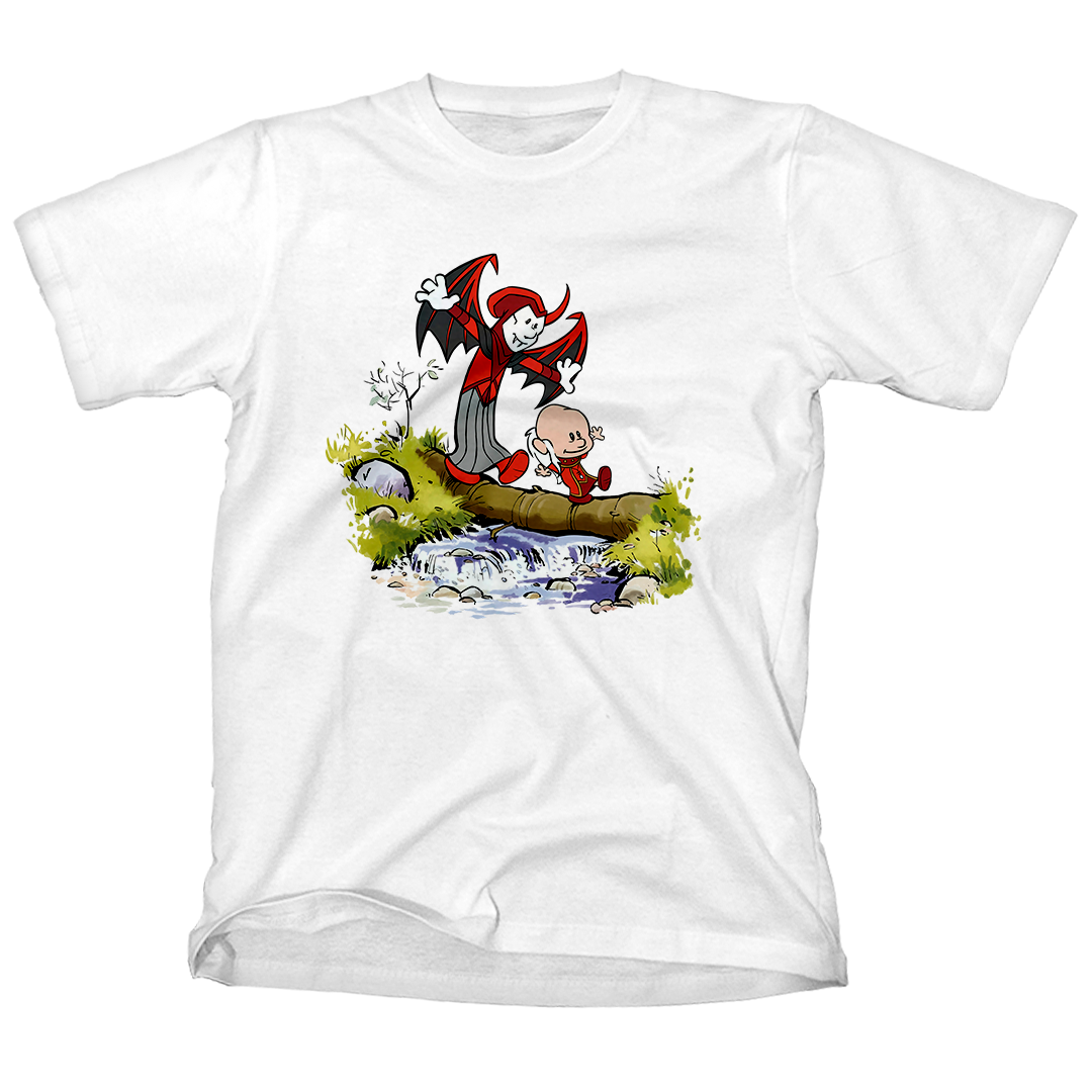 Explore a nostalgia com a estampa exclusiva "Siga o Mestre", um incrível crossover entre a clássica cena de Calvin e Haroldo atravessando um riacho e os icônicos personagens do desenho Caverna do Dragão. Calvin assume o papel do enigmático Mestre dos Magos, enquanto Haroldo se transforma no misterioso Vingador. Celebre a união desses mundos em uma estampa que captura a essência da aventura e da imaginação. Encontre a magia em cada detalhe enquanto esses personagens tão queridos se unem de uma maneira única e cativante. Adquira já a sua e mergulhe nessa jornada inesquecível! #SigaOMestre #CavernaDoDragão #CalvinEHaroldo #NostalgiaGeek #EstampaExclusiva #DungeonsAndDragons