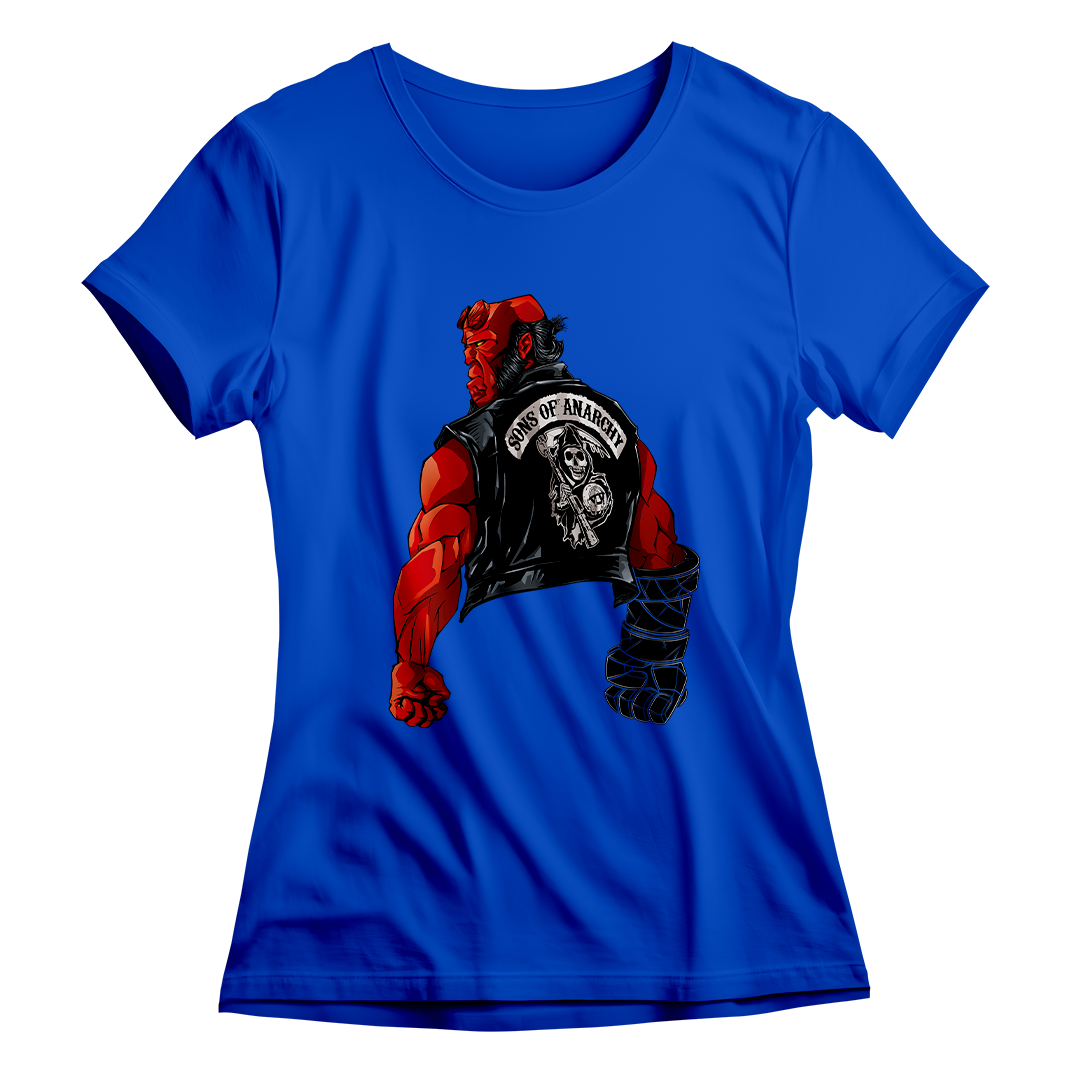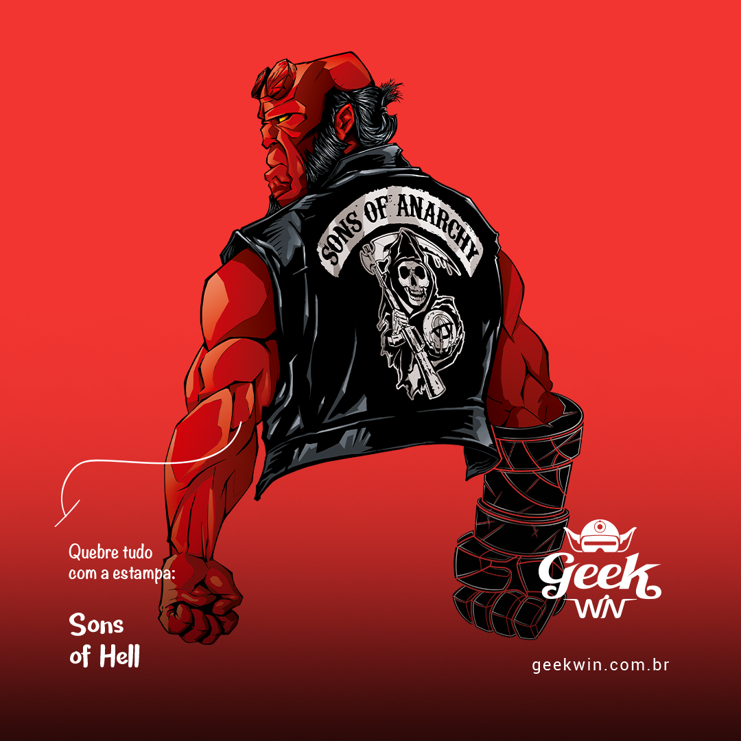 Desvende o crossover épico nesta estampa exclusiva! O anti-herói Hellboy encontra a selvagem gangue de motociclistas de Sons of Anarchy. Com Ron Perlman interpretando ambos os personagens, Hellboy adota o estilo da gangue, vestindo a icônica jaqueta, revelando um encontro inusitado e cheio de atitude. Uma fusão única entre o sobrenatural e o mundo das estradas. Garanta já a sua dose de rebeldia com a estampa Sons of Hell!