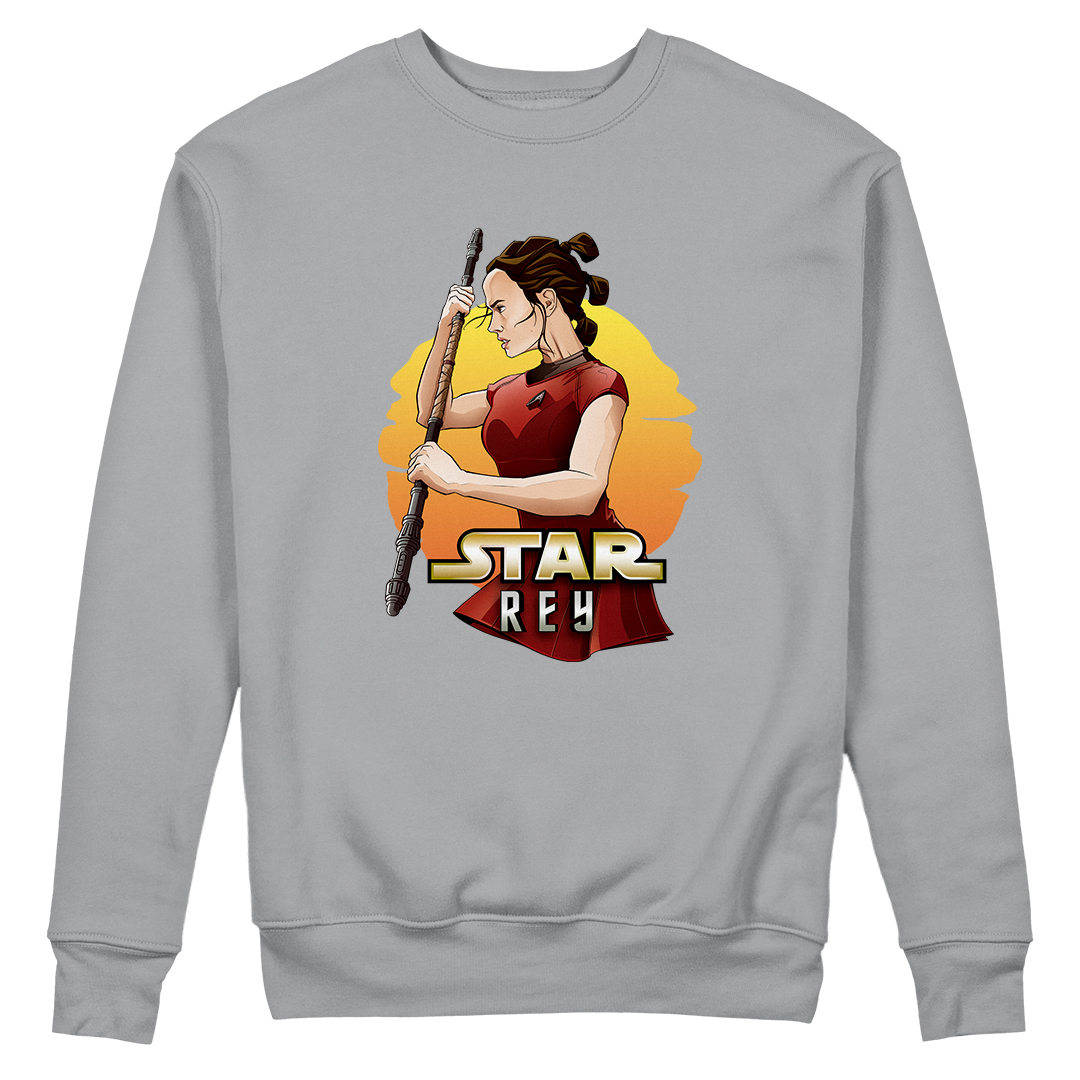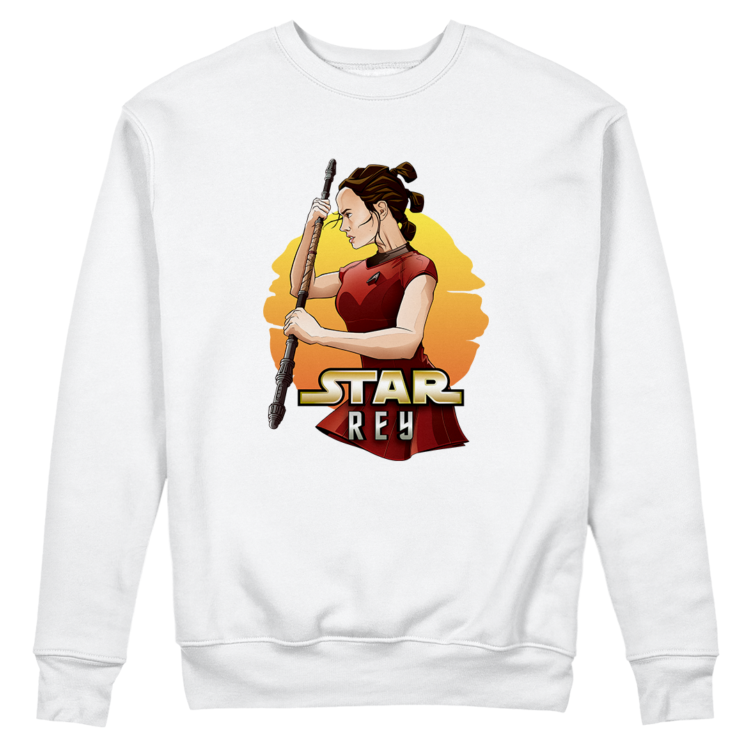 Na estampa 'Star Rey', mergulhamos fundo em um intrigante crossover que funde dois universos icônicos: Star Wars e Star Trek Além da Escuridão. O que torna essa criação verdadeiramente especial é a união de elementos tão distintos quanto a fantasia de Star Wars e a ficção científica de Star Trek. Nela, a protagonista Rey de Star Wars episódio 7 veste o uniforme de Uhura de Star Trek, desafiando as fronteiras dos gêneros. Esse crossover destemido e criativo celebra a paixão por ambos os mundos, provando que, na Geek Win, não há limites para a criatividade e a expressão de amor à cultura geek. O lettering 'Star Rey' incorpora a tipografia da franquia Star Wars em 'Star' e a tipografia de Star Trek em 'Rey', unindo visualmente os dois universos.