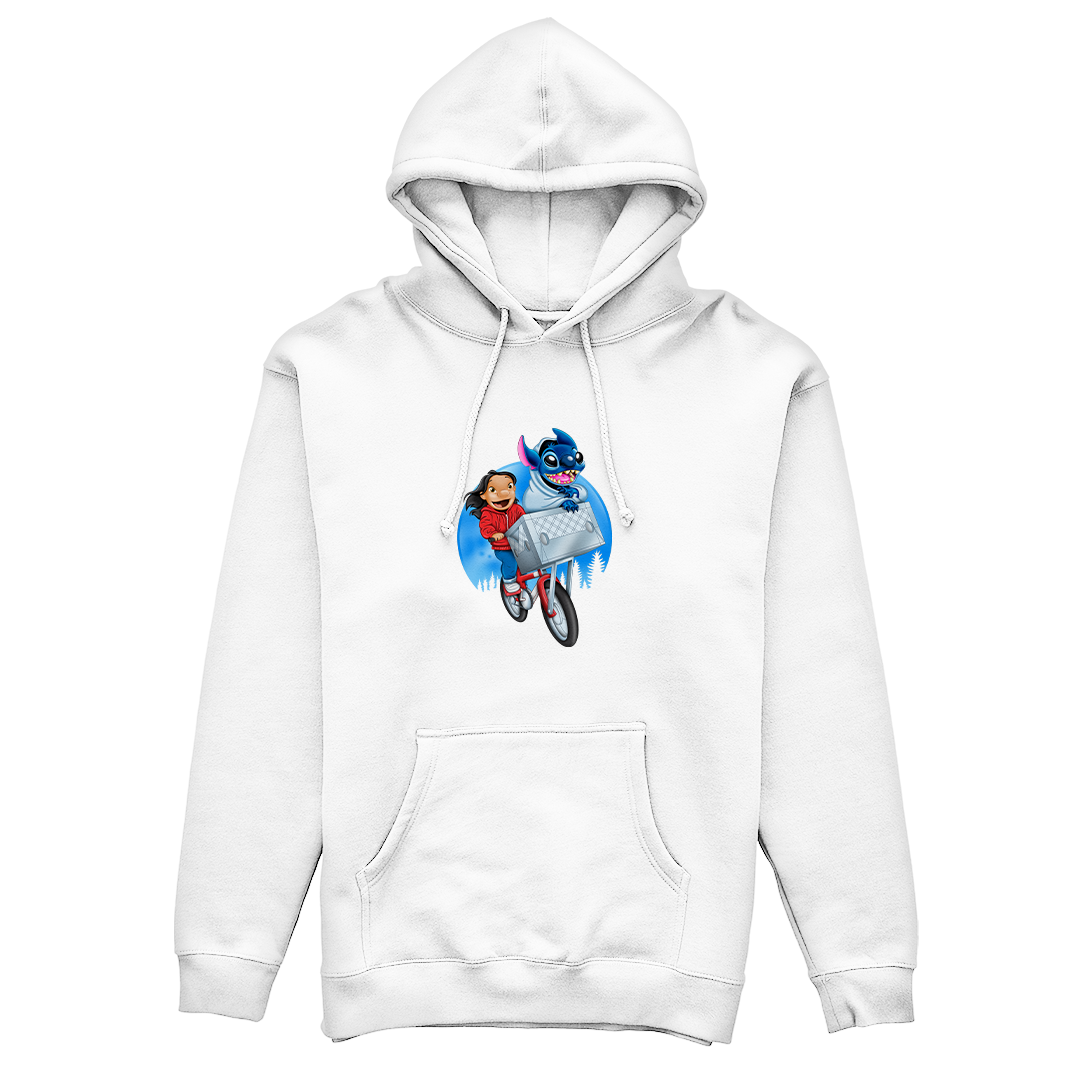 Prepare-se para uma viagem nostálgica e divertida com a estampa Stitch The Extra-Terrestrial! Inspirada no clássico filme E.T. – O Extraterrestre de Steven Spielberg e no inesquecível Lilo & Stitch da Disney, esta arte faz um crossover épico entre dois mundos amados da cultura pop. Na estampa, Lilo protagoniza a icônica cena da bicicleta voadora de E.T., mas ao invés do extraterrestre original, quem está na cesta é o caótico e adorável Stitch, também um alienígena! Tudo isso com o estilo visual encantador do desenho Lilo & Stitch.