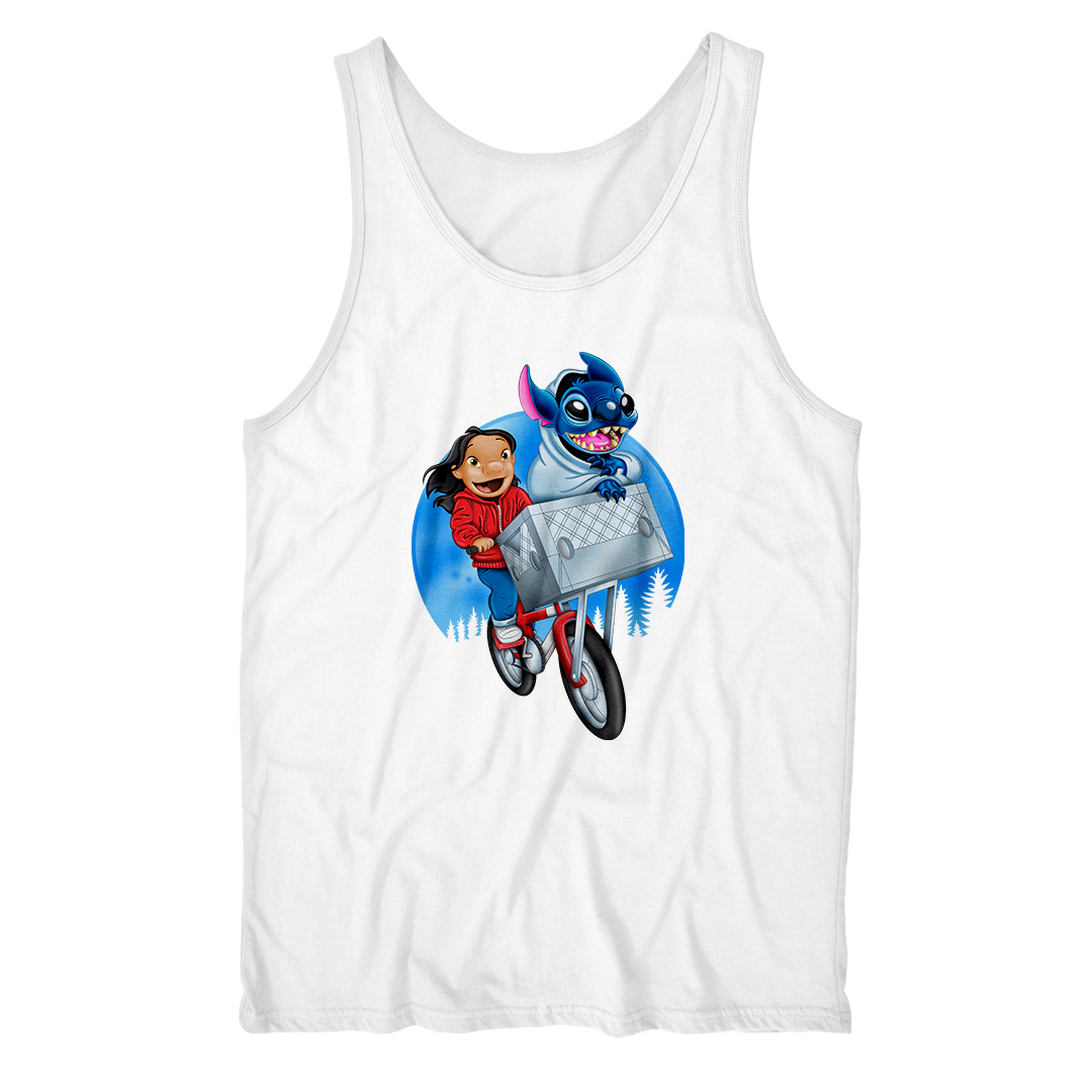 Prepare-se para uma viagem nostálgica e divertida com a estampa Stitch The Extra-Terrestrial! Inspirada no clássico filme E.T. – O Extraterrestre de Steven Spielberg e no inesquecível Lilo & Stitch da Disney, esta arte faz um crossover épico entre dois mundos amados da cultura pop. Na estampa, Lilo protagoniza a icônica cena da bicicleta voadora de E.T., mas ao invés do extraterrestre original, quem está na cesta é o caótico e adorável Stitch, também um alienígena! Tudo isso com o estilo visual encantador do desenho Lilo & Stitch.