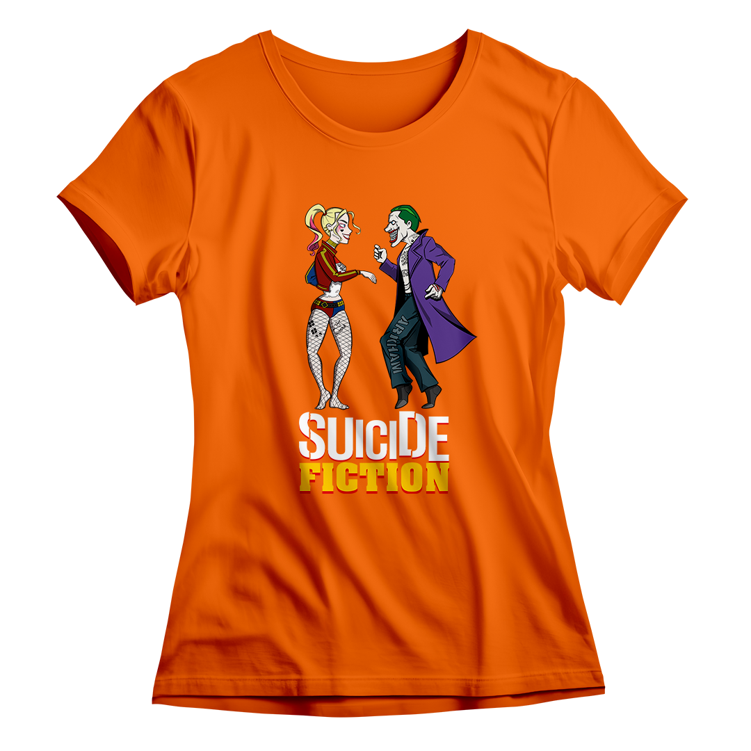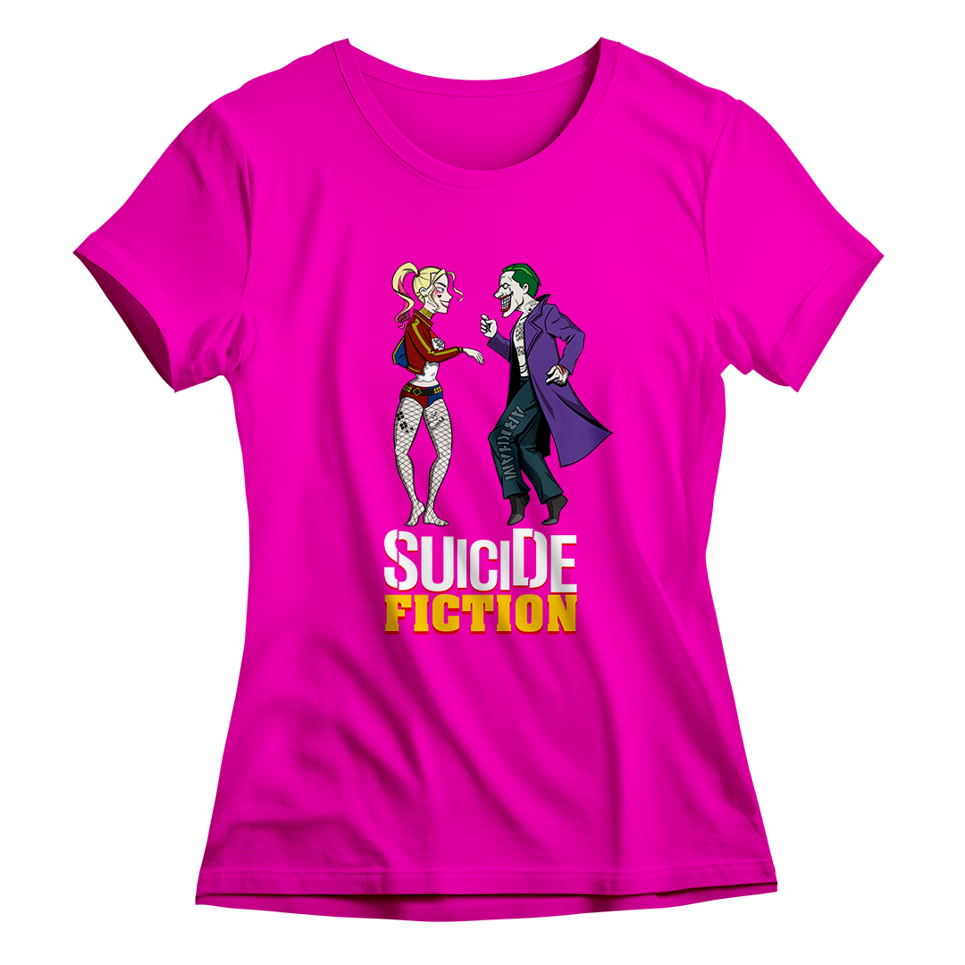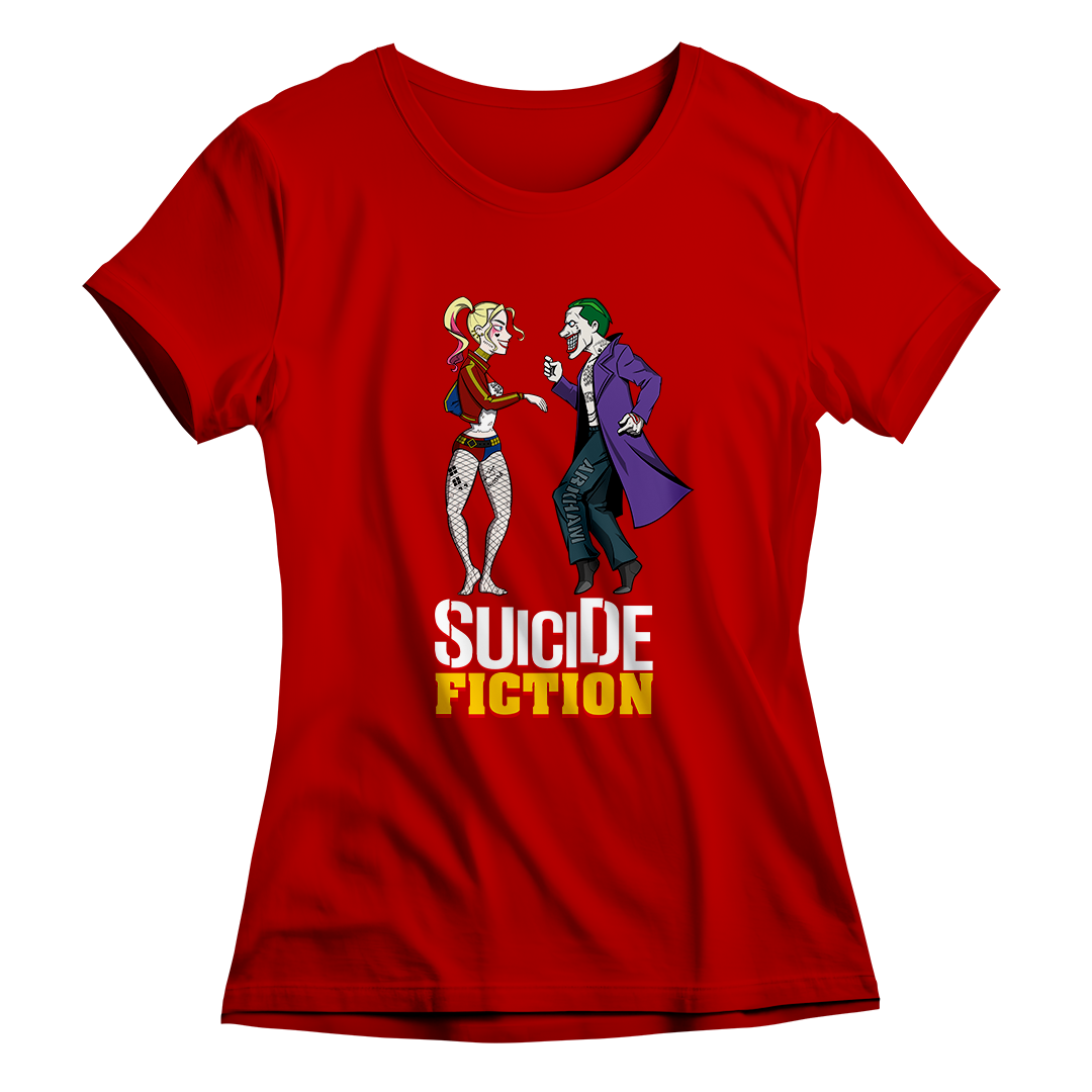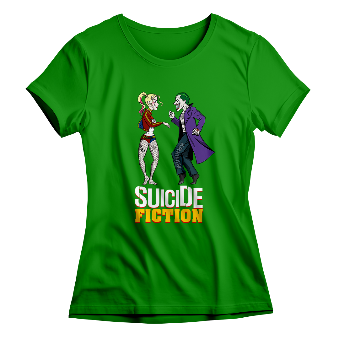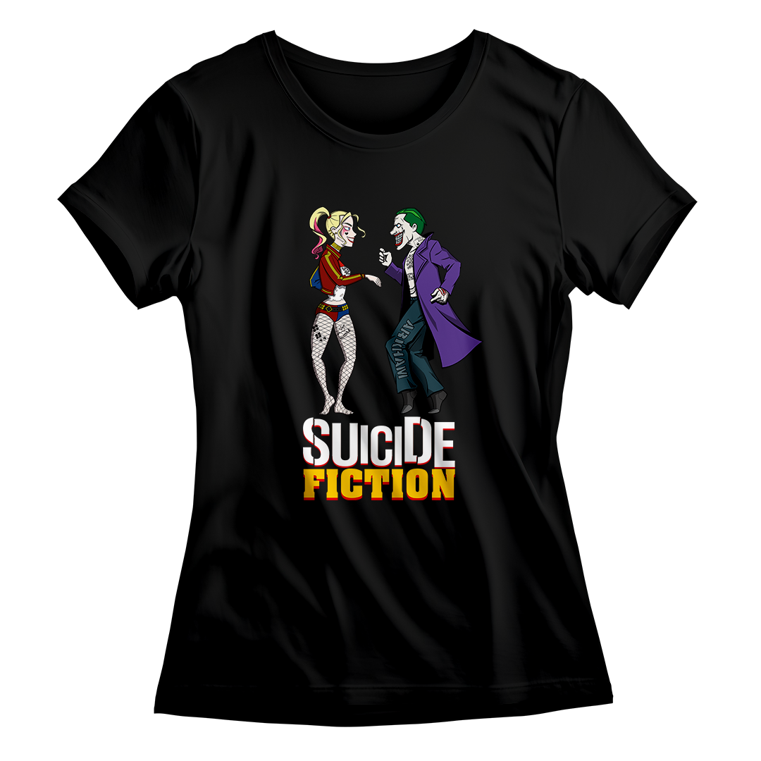Explore o encontro único entre o universo do Suicide Squad da DC e o estilo icônico de Quentin Tarantino em nossa estampa "Suicide Fiction". Testemunhe o casal explosivo Arlequina e Coringa recriando, com sua própria dose de loucura, a inesquecível cena de dança de Mia e Vincent do Pulp Fiction. Uma fusão de referências cinematográficas que eleva o estilo geek a um novo patamar. Adquira essa mistura única de cultura pop agora! #SuicideFiction #CrossoverCinematografico #EstampaGeek #QuentinTarantinoInspired #EsquadrãoSuicida #PulpFictionMeme #CasalNerd #ArlequinaCoringa #CamisetaCinéfila #ModaGeek #DançaCinematográfica #DCComicsInspired #TarantinoStyle #NerdFashion