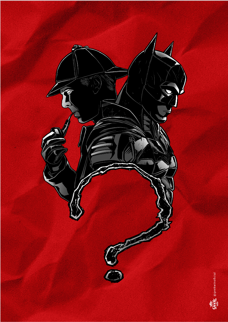 Mergulhe na intrigante fusão de mundos com nossa estampa exclusiva "The Batman" da Geek Win. Este crossover épico une o icônico detetive Batman do filme de 2022 com o perspicaz Sherlock Holmes da série de 2010. Suas silhuetas, de costas uma para a outra, revelam detalhes distintivos enquanto uma interrogação estilizada conecta esses dois mestres investigadores. Explore o enigma desta estampa que transcende universos! #TheBatman #SherlockHolmes #CrossoverGeek #EstampaExclusiva #DetetivesFashion #GeekWinStyle #ModaNerd