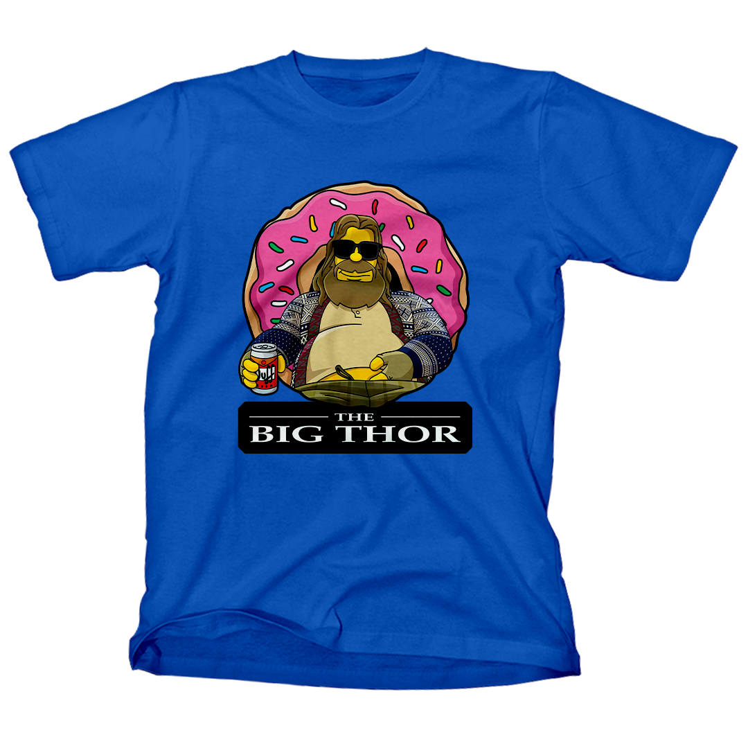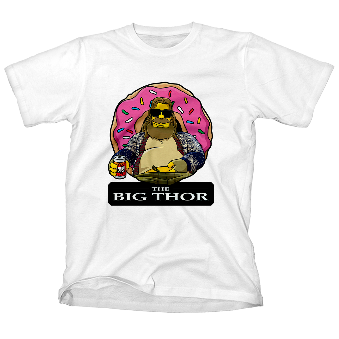 Quem disse que super-heróis não podem relaxar? Em 'The Big Thor', nossa homenagem a Avengers: Endgame encontra o universo de Os Simpsons. Fat Thor, com inspiração no icônico Lebowski, aproveita uma Duff gelada na frente de um Donut gigante. Uma mistura épica de humor e referências que você só encontra na Geek Win. #TheBigThor #GeekWinStyle #SimpsonsMeetsMarvel #UltimateCrossover