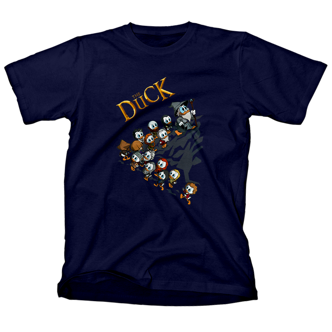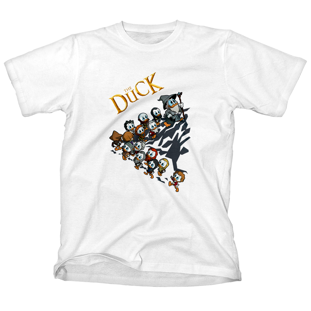 Suba a bordo dessa jornada épica com a estampa "The Duck", um crossover hilário entre os adoráveis personagens de DuckTales: Os Caçadores de Aventuras e o mundo mágico de The Hobbit, a obra clássica de J.R.R. Tolkien. Veja o Tio Patinhas liderando como Gandalf, guiando seus 13 sobrinhos anões (sim, 13!) — Thorin, Balin, Dwalin, Fili, Kili, Bofur, Bifur, Bombur, Glóin, Óin, Dori, Nori e Ori — e 1 sobrinho Hobbit, de nome Bilbo. Juntos, eles enfrentam desafios e aventuras dignas de uma jornada inesperada. Vista-se com essa peça única que celebra dois mundos fantásticos em uma única estampa! #DuckTales #TheHobbit #GeekWinAdventure #FantasiaNerd #JornadaÉpica #DuckTalesNoHobbit