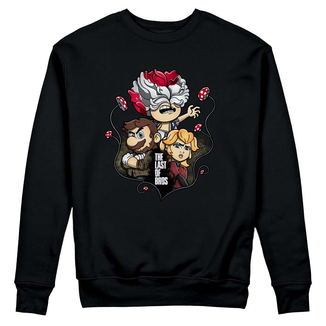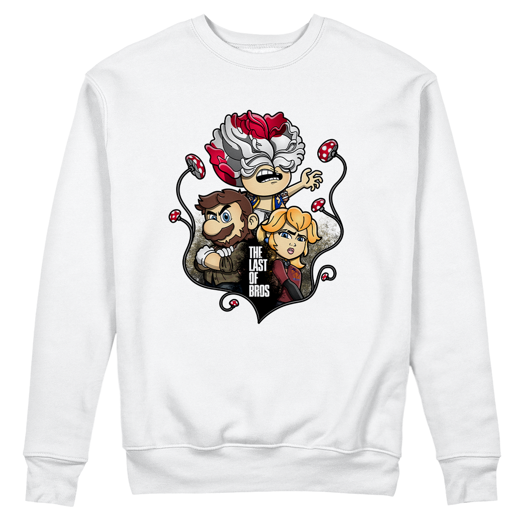 Explore um mundo onde cogumelos não são apenas itens de poder, mas também uma terrível ameaça. Em nossa estampa "The Last of Bros", mergulhe na fusão única entre The Last of Us e Super Mário Bros. Testemunhe Toad, agora transformado em um Clicker, expressando desespero e zumbificação. A baixo, Mario assume o papel de Joel, protegendo a Princesa Peach, que personifica a corajosa Ellie. Os cogumelos crescem entre esses personagens, contornando a narrativa de sobrevivência. O lettering "The Last of Bros" evoca a união desses dois universos, onde Mario se torna o último dos irmãos em uma jornada épica. Envolva-se nesta mistura única de ação, aventura e cogumelos, uma exclusividade Geek Win.
