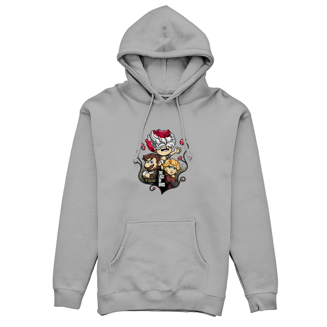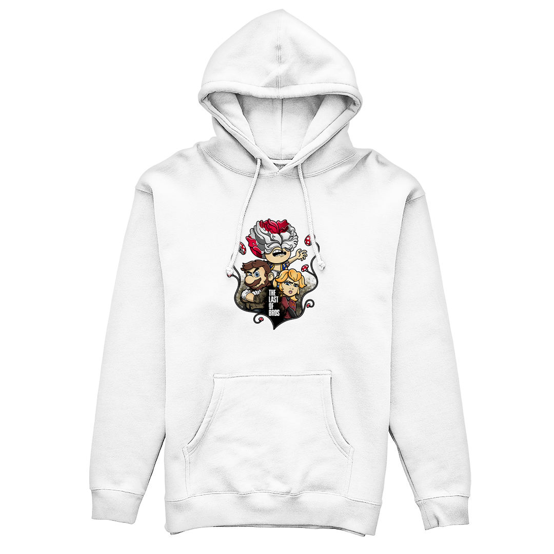 Explore um mundo onde cogumelos não são apenas itens de poder, mas também uma terrível ameaça. Em nossa estampa "The Last of Bros", mergulhe na fusão única entre The Last of Us e Super Mário Bros. Testemunhe Toad, agora transformado em um Clicker, expressando desespero e zumbificação. A baixo, Mario assume o papel de Joel, protegendo a Princesa Peach, que personifica a corajosa Ellie. Os cogumelos crescem entre esses personagens, contornando a narrativa de sobrevivência. O lettering "The Last of Bros" evoca a união desses dois universos, onde Mario se torna o último dos irmãos em uma jornada épica. Envolva-se nesta mistura única de ação, aventura e cogumelos, uma exclusividade Geek Win.