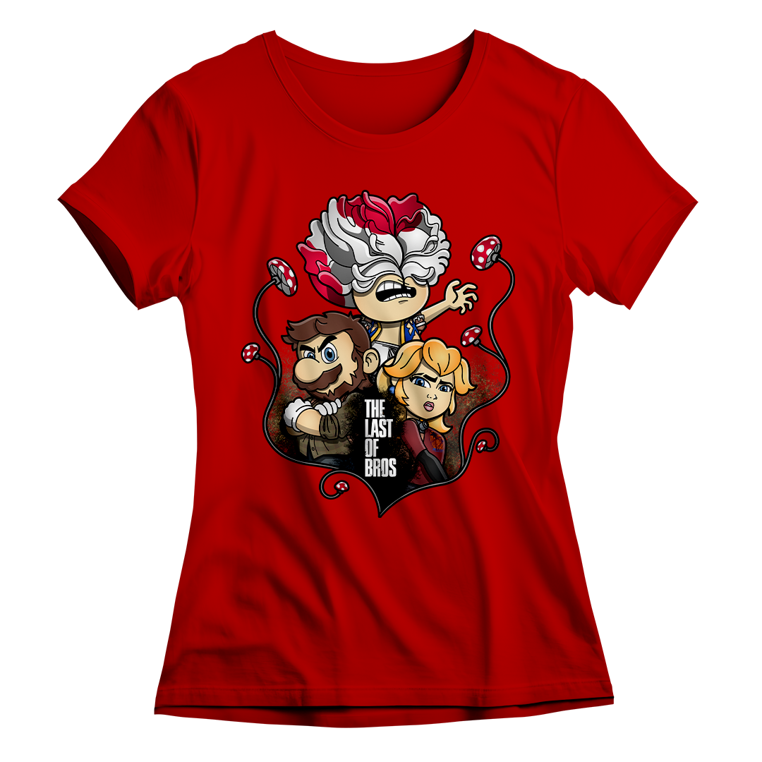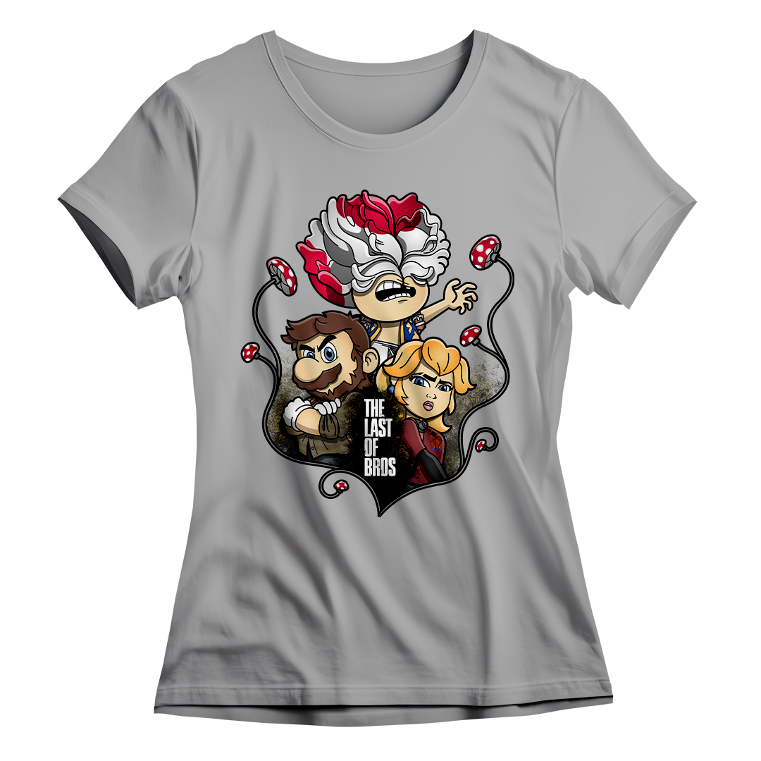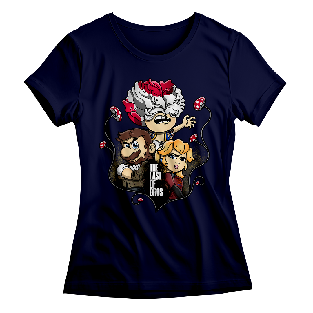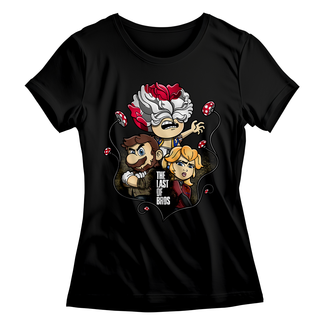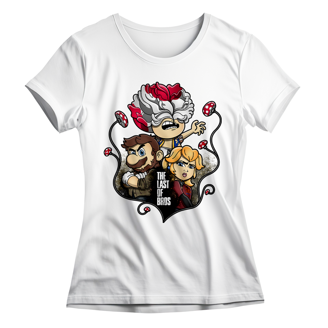Explore um mundo onde cogumelos não são apenas itens de poder, mas também uma terrível ameaça. Em nossa estampa "The Last of Bros", mergulhe na fusão única entre The Last of Us e Super Mário Bros. Testemunhe Toad, agora transformado em um Clicker, expressando desespero e zumbificação. A baixo, Mario assume o papel de Joel, protegendo a Princesa Peach, que personifica a corajosa Ellie. Os cogumelos crescem entre esses personagens, contornando a narrativa de sobrevivência. O lettering "The Last of Bros" evoca a união desses dois universos, onde Mario se torna o último dos irmãos em uma jornada épica. Envolva-se nesta mistura única de ação, aventura e cogumelos, uma exclusividade Geek Win.