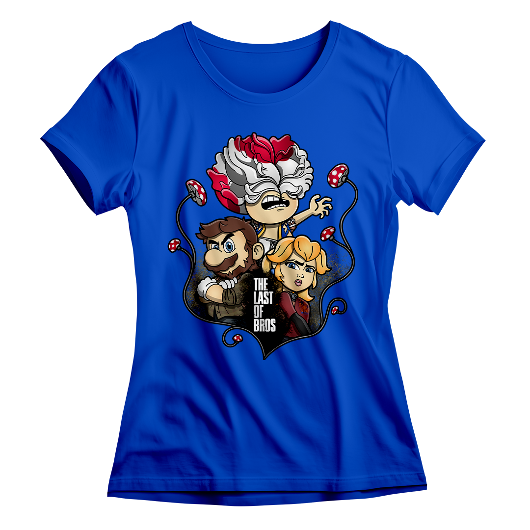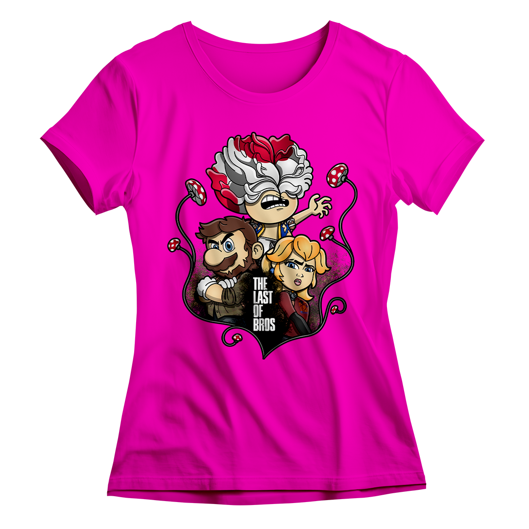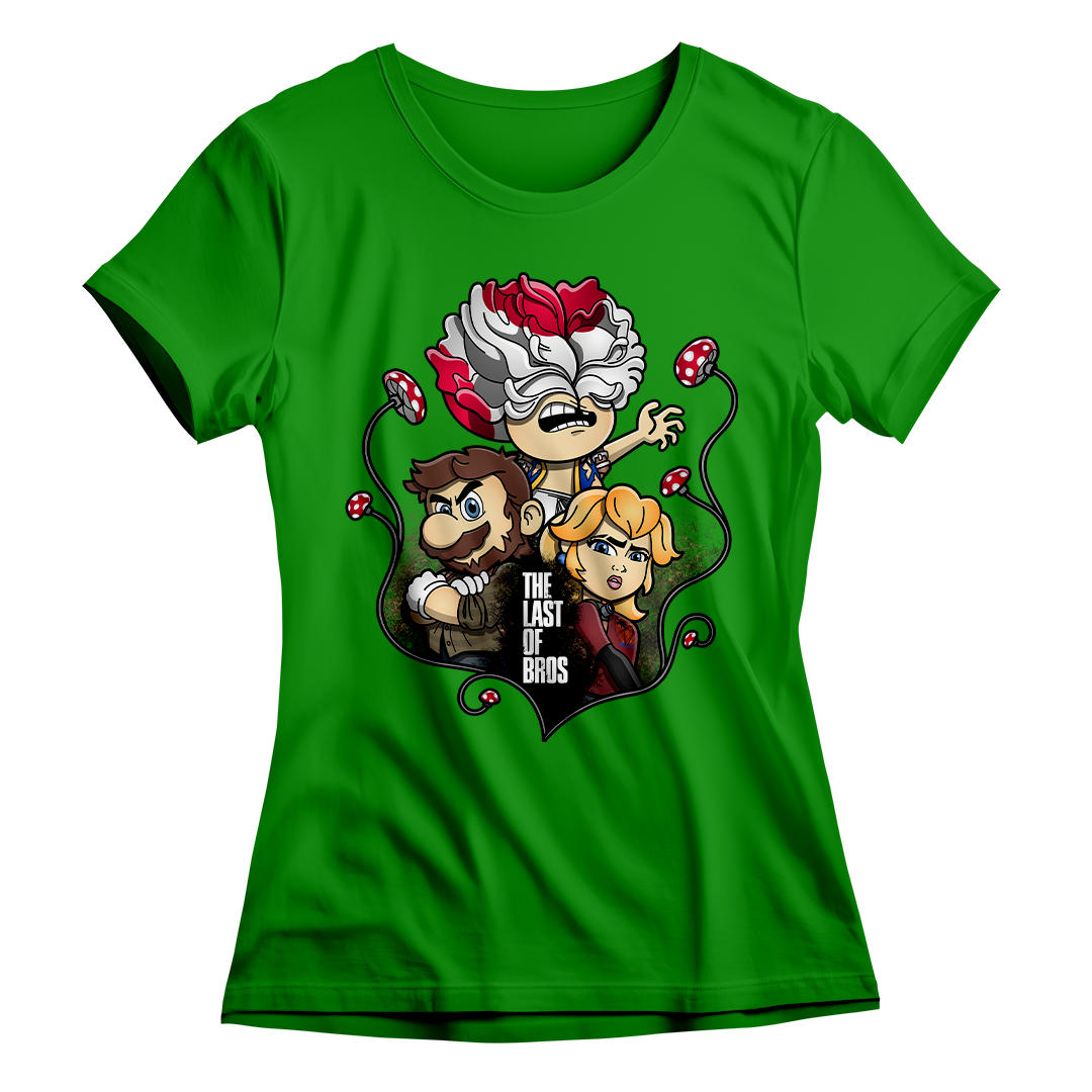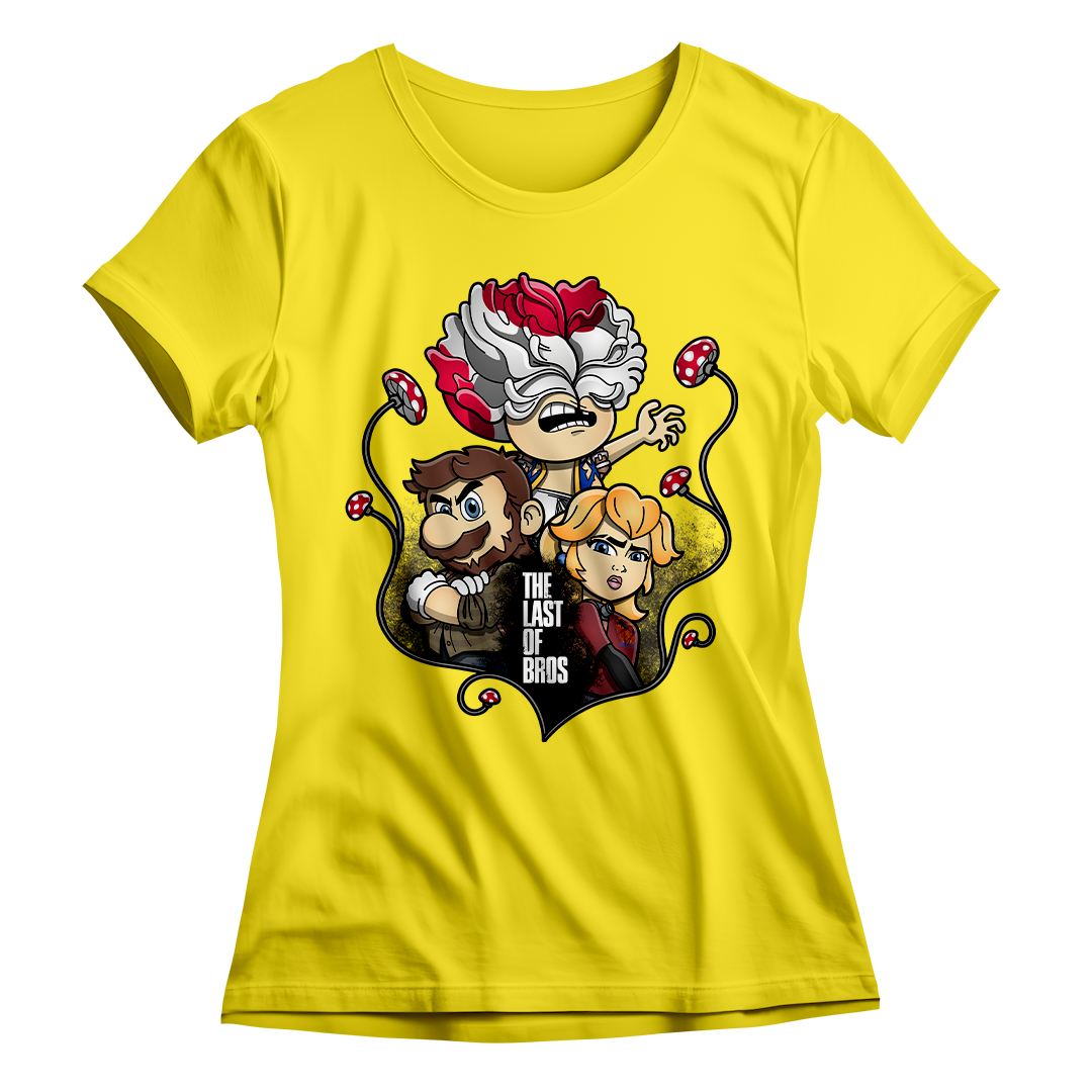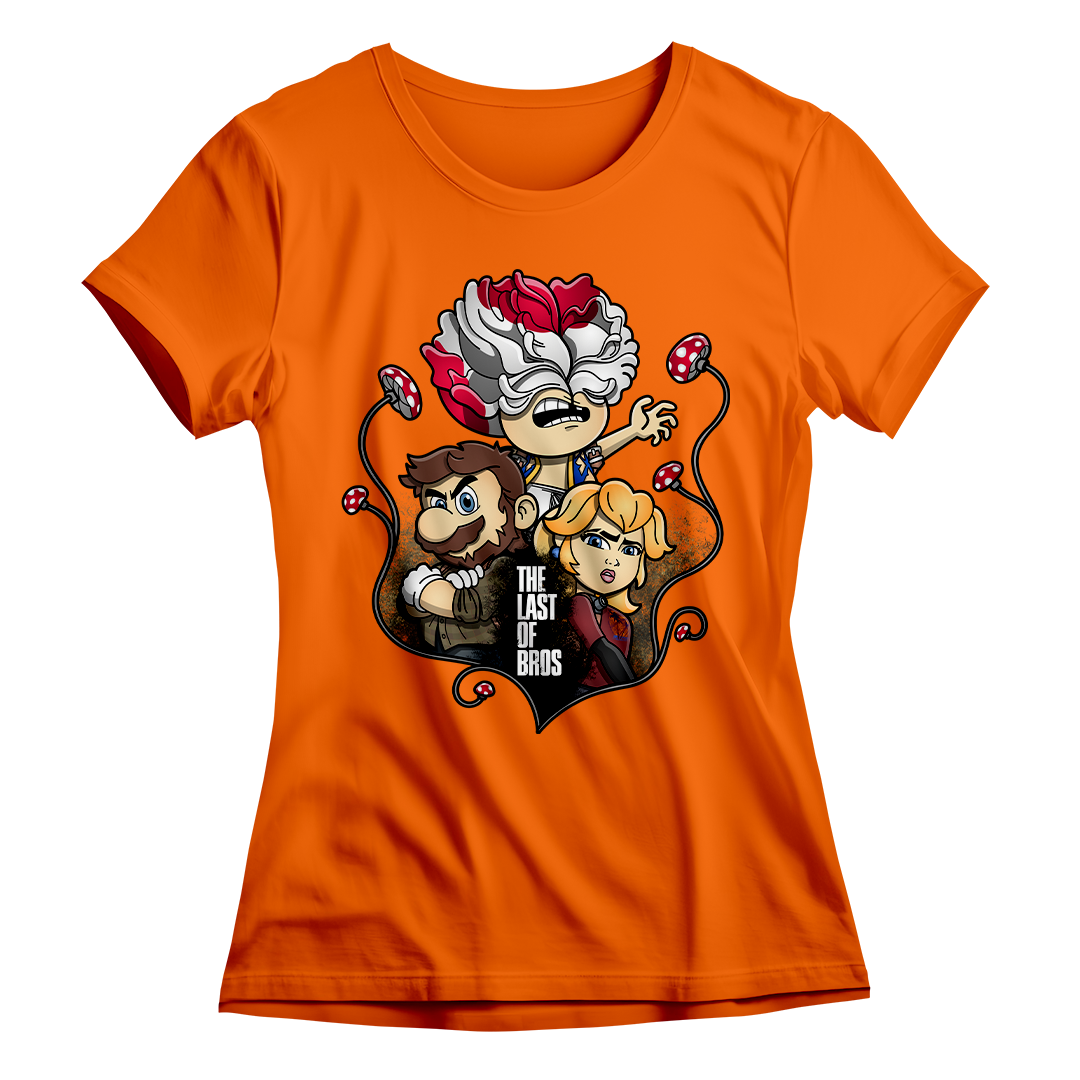 Explore um mundo onde cogumelos não são apenas itens de poder, mas também uma terrível ameaça. Em nossa estampa "The Last of Bros", mergulhe na fusão única entre The Last of Us e Super Mário Bros. Testemunhe Toad, agora transformado em um Clicker, expressando desespero e zumbificação. A baixo, Mario assume o papel de Joel, protegendo a Princesa Peach, que personifica a corajosa Ellie. Os cogumelos crescem entre esses personagens, contornando a narrativa de sobrevivência. O lettering "The Last of Bros" evoca a união desses dois universos, onde Mario se torna o último dos irmãos em uma jornada épica. Envolva-se nesta mistura única de ação, aventura e cogumelos, uma exclusividade Geek Win.