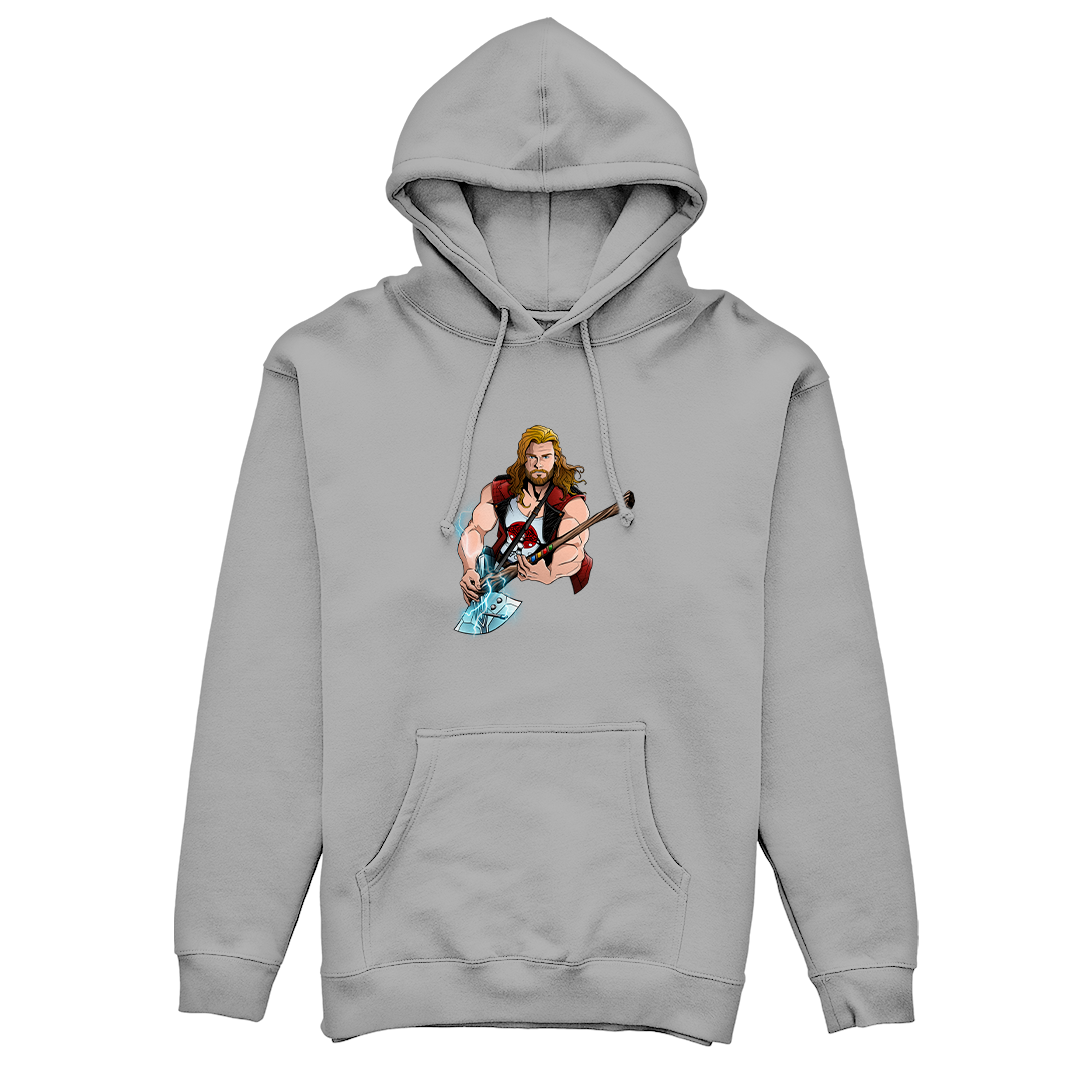 Entre no mundo do rock e dos trovões com nossa estampa exclusiva "Thor Hero" da Geek Win! Desfrute do crossover épico do Thor da Marvel, inspirado no filme Thor Love and Thunder, em uma performance de guitarra que homenageia a lendária banda Guns N' Roses. A guitarra, uma fusão de brinquedo Guitar Hero e a Rompe-Tormentas, irradia raios enquanto o Deus do Trovão mostra suas habilidades musicais. Uma verdadeira celebração de heróis e música em uma única estampa! #ThorHero #GeekWinStyle