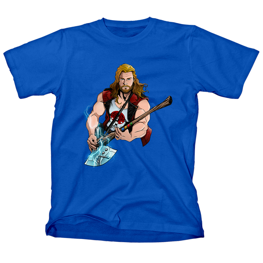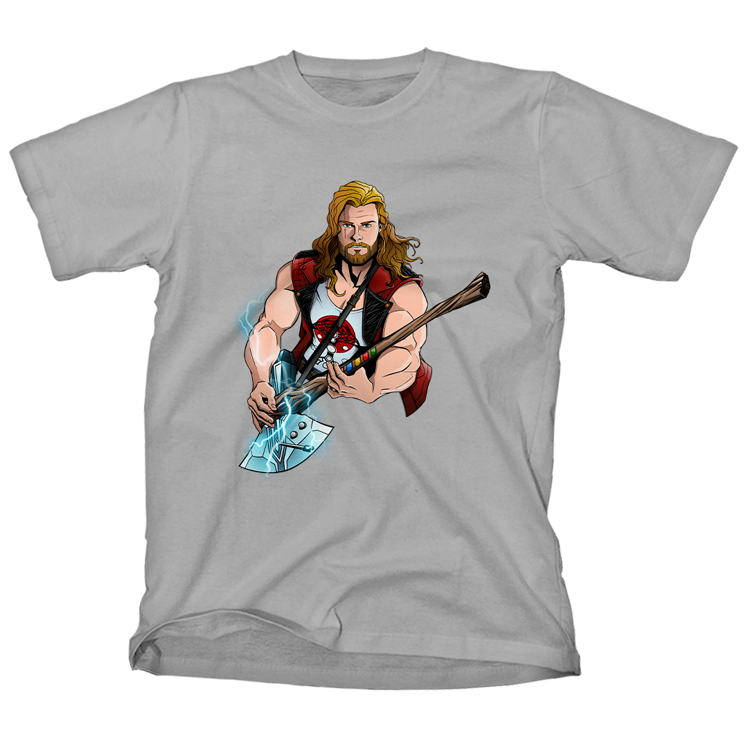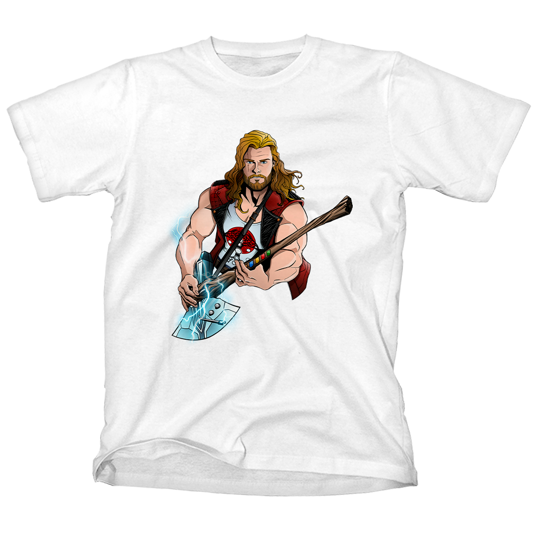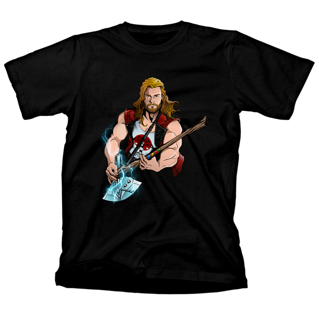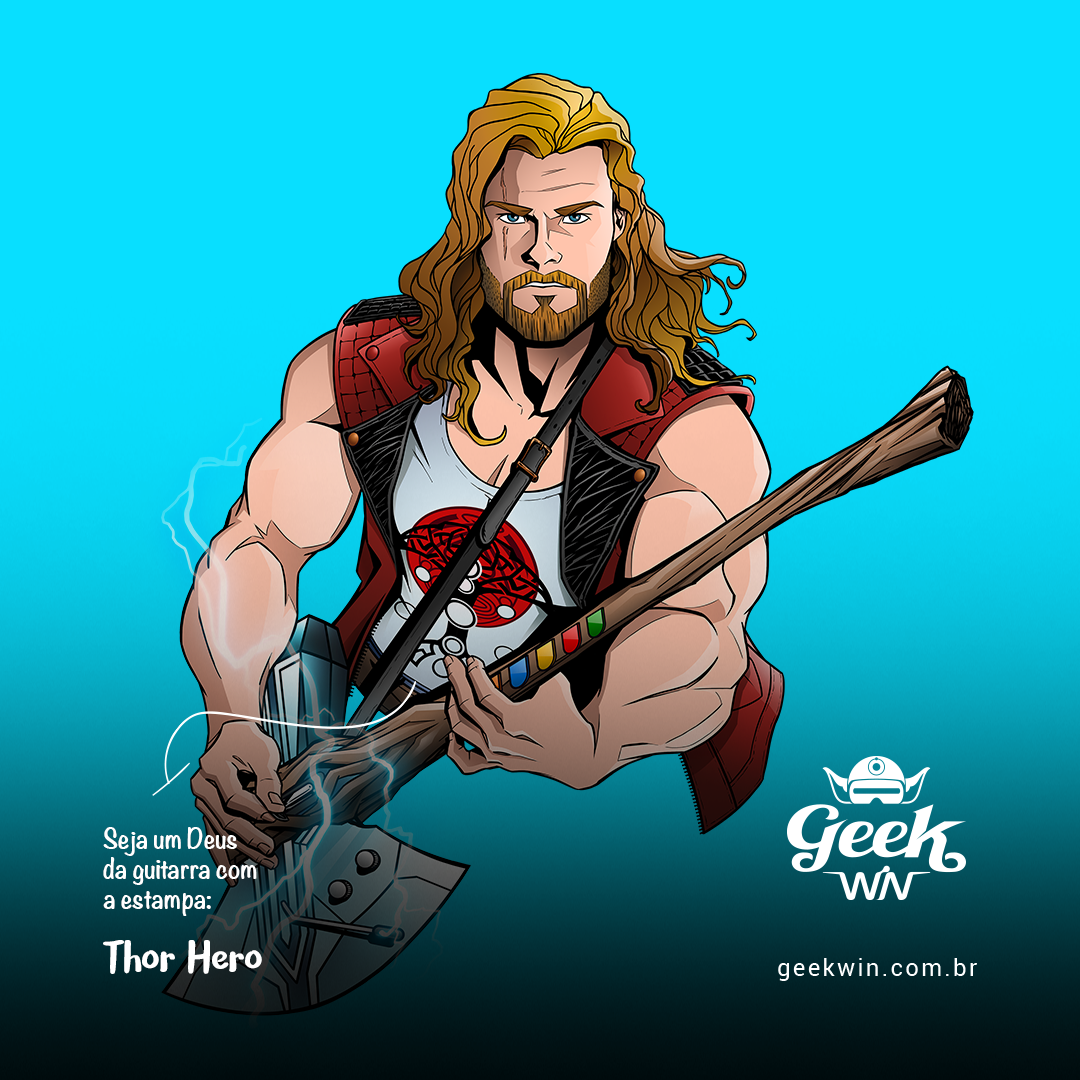 Entre no mundo do rock e dos trovões com nossa estampa exclusiva "Thor Hero" da Geek Win! Desfrute do crossover épico do Thor da Marvel, inspirado no filme Thor Love and Thunder, em uma performance de guitarra que homenageia a lendária banda Guns N' Roses. A guitarra, uma fusão de brinquedo Guitar Hero e a Rompe-Tormentas, irradia raios enquanto o Deus do Trovão mostra suas habilidades musicais. Uma verdadeira celebração de heróis e música em uma única estampa! #ThorHero #GeekWinStyle