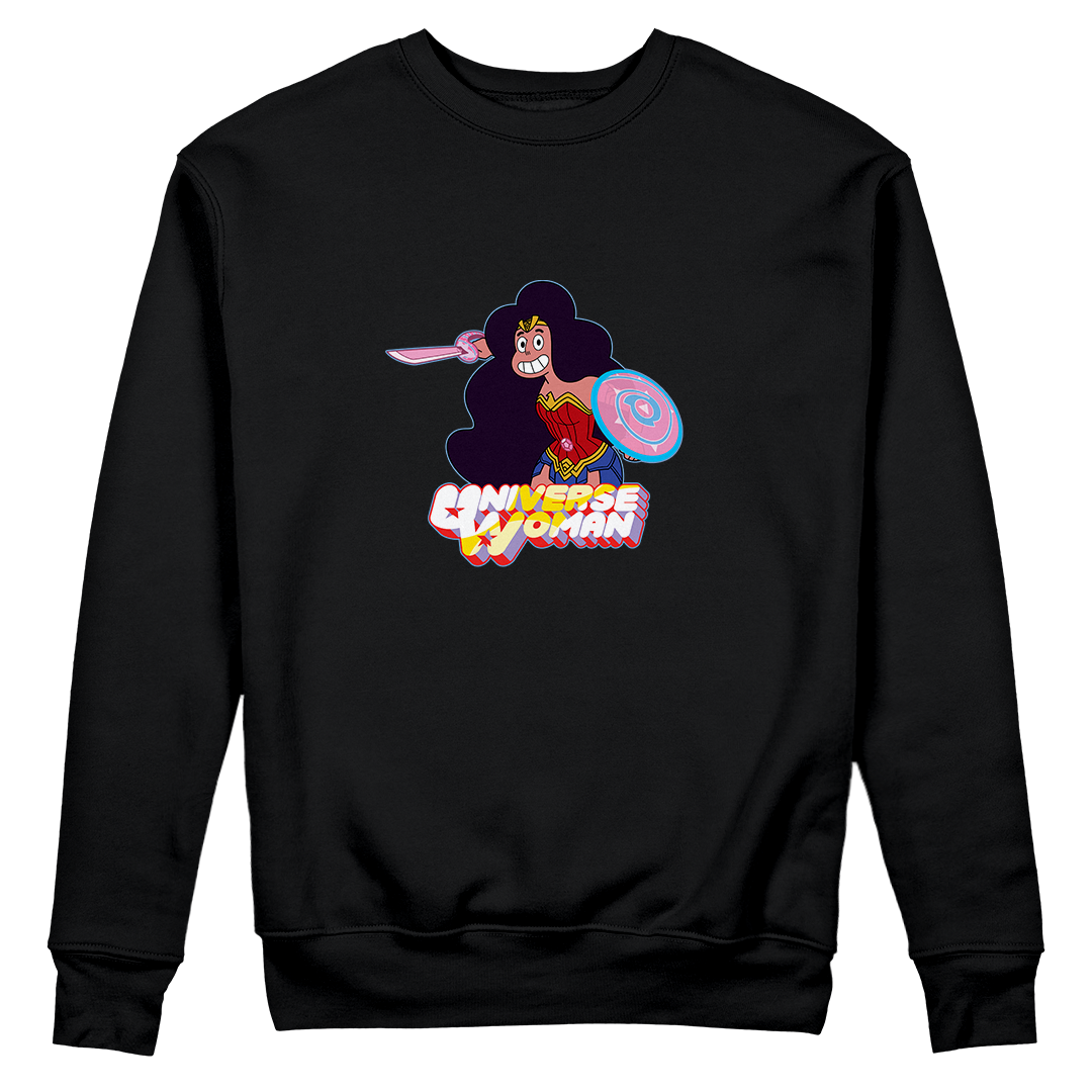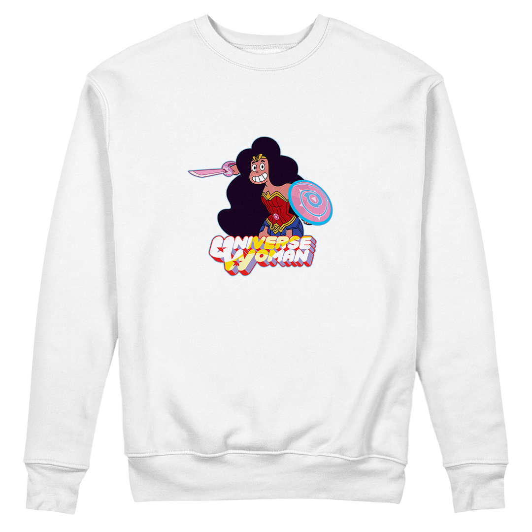 Explore o poder feminino com nossa estampa exclusiva "Universe Woman" da Geek Win. Nessa criação, Stevonnie de Steven Universe se une à icônica Mulher Maravilha, incorporando o melhor dos dois mundos. Vestida como a heroína da DC, Stevonnie mantém seu escudo e espada característicos, criando uma fusão única e empoderada. Uma celebração da diversidade e força feminina que vai além das fronteiras dos universos. #UniverseWoman #EmpoderamentoFeminino #GeekWinStyle #StevenUniverse #WonderWoman #EstampaExclusiva