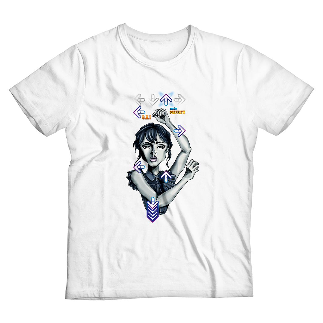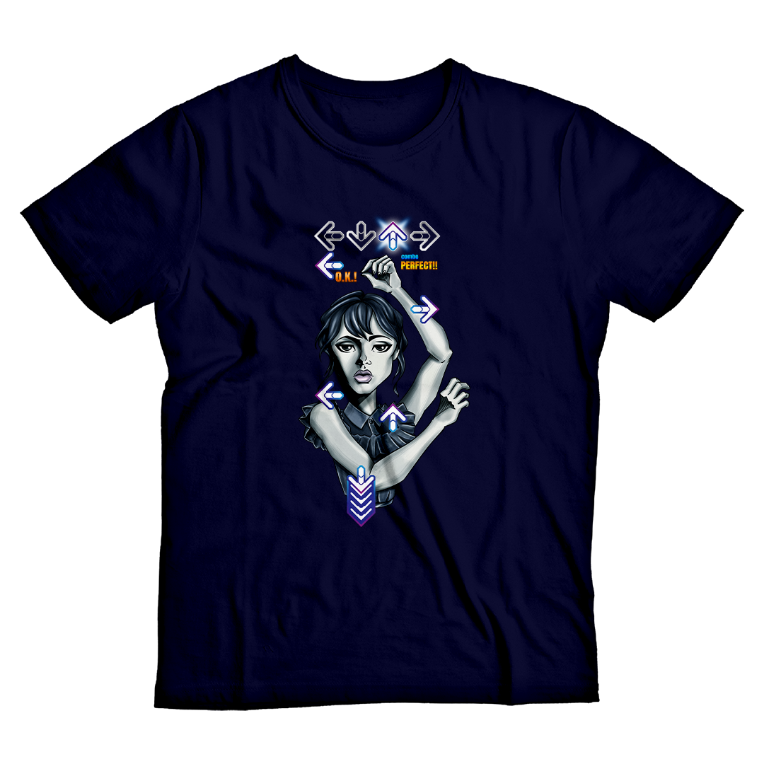 Explore o ritmo único da Wandinha em nossa estampa exclusiva "Wandinha Dance" da Geek Win. Mergulhe na fusão de sua dança marcante da série Wandinha da Netflix, interpretada pela talentosa Jenna Ortega e dirigido por Tim Burton, com a vibração do Dance Dance Revolution do PlayStation. Uma combinação perfeita de nostalgia e estilo que fará você querer dançar junto! #WandinhaDance #GeekWinStyle