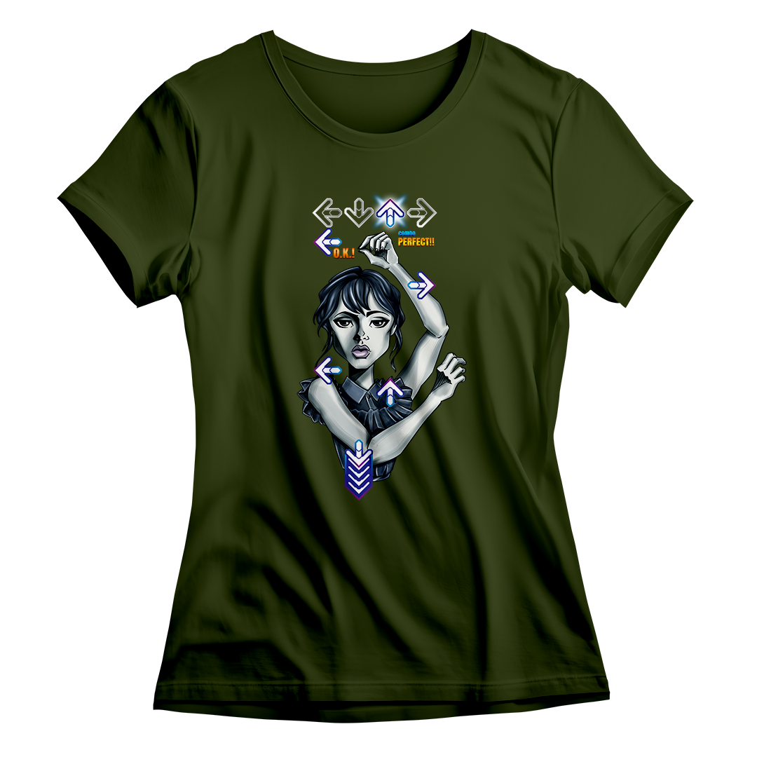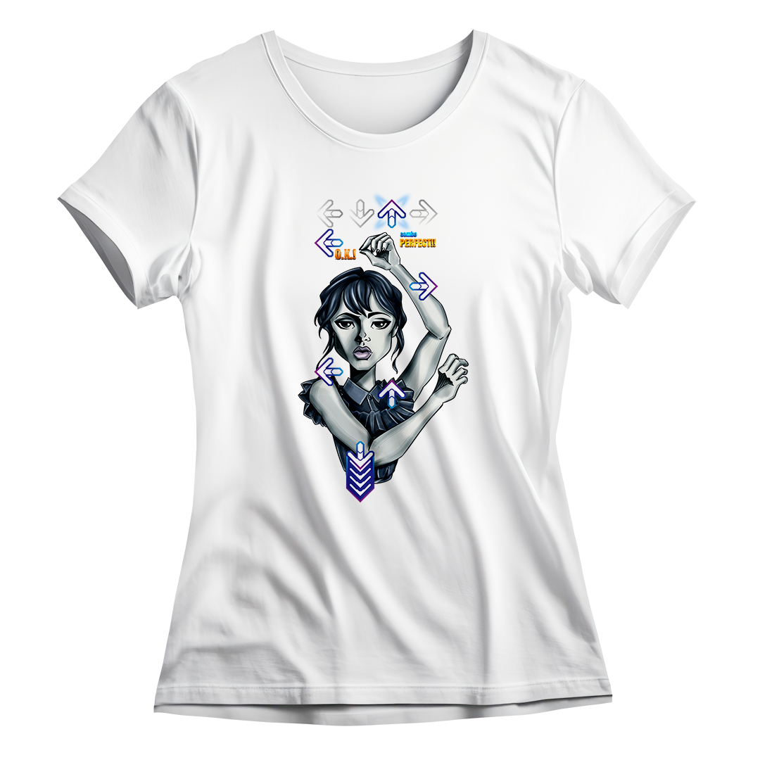 Explore o ritmo único da Wandinha em nossa estampa exclusiva "Wandinha Dance" da Geek Win. Mergulhe na fusão de sua dança marcante da série Wandinha da Netflix, interpretada pela talentosa Jenna Ortega e dirigido por Tim Burton, com a vibração do Dance Dance Revolution do PlayStation. Uma combinação perfeita de nostalgia e estilo que fará você querer dançar junto! #WandinhaDance #GeekWinStyle