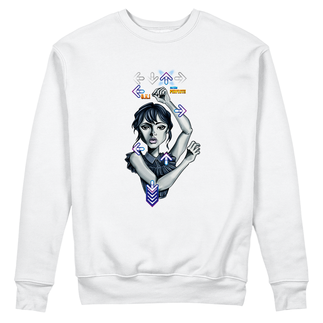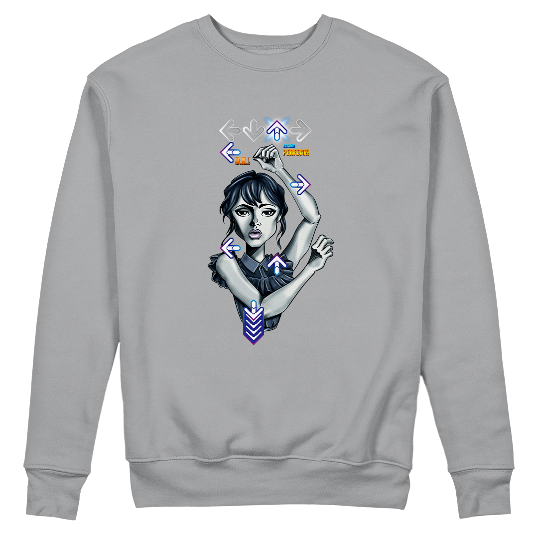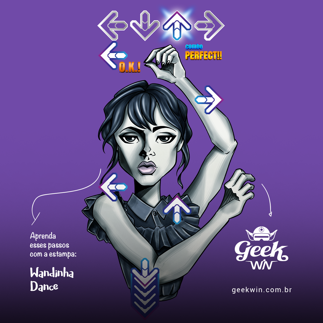 Explore o ritmo único da Wandinha em nossa estampa exclusiva "Wandinha Dance" da Geek Win. Mergulhe na fusão de sua dança marcante da série Wandinha da Netflix, interpretada pela talentosa Jenna Ortega e dirigido por Tim Burton, com a vibração do Dance Dance Revolution do PlayStation. Uma combinação perfeita de nostalgia e estilo que fará você querer dançar junto! #WandinhaDance #GeekWinStyle