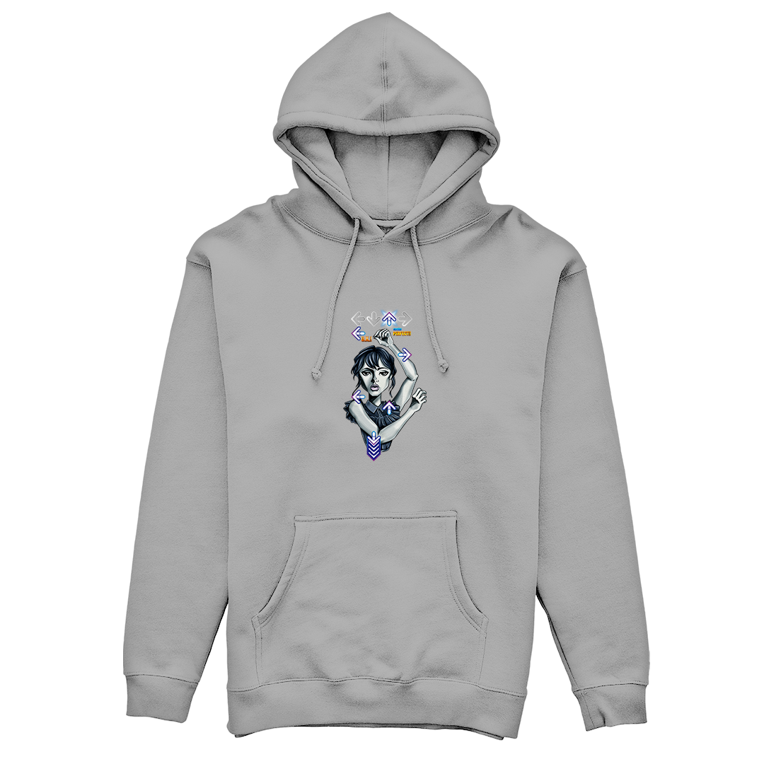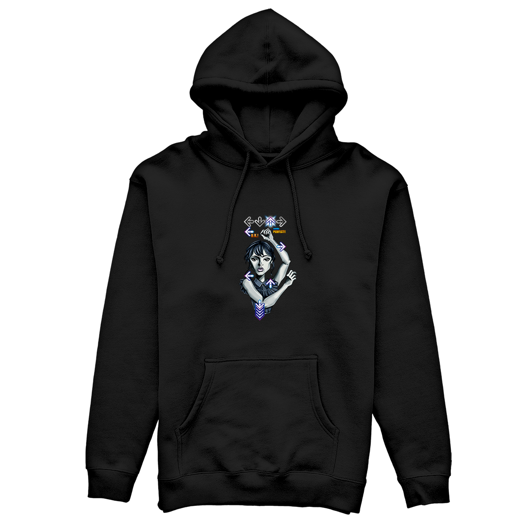 Explore o ritmo único da Wandinha em nossa estampa exclusiva "Wandinha Dance" da Geek Win. Mergulhe na fusão de sua dança marcante da série Wandinha da Netflix, interpretada pela talentosa Jenna Ortega e dirigido por Tim Burton, com a vibração do Dance Dance Revolution do PlayStation. Uma combinação perfeita de nostalgia e estilo que fará você querer dançar junto! #WandinhaDance #GeekWinStyle