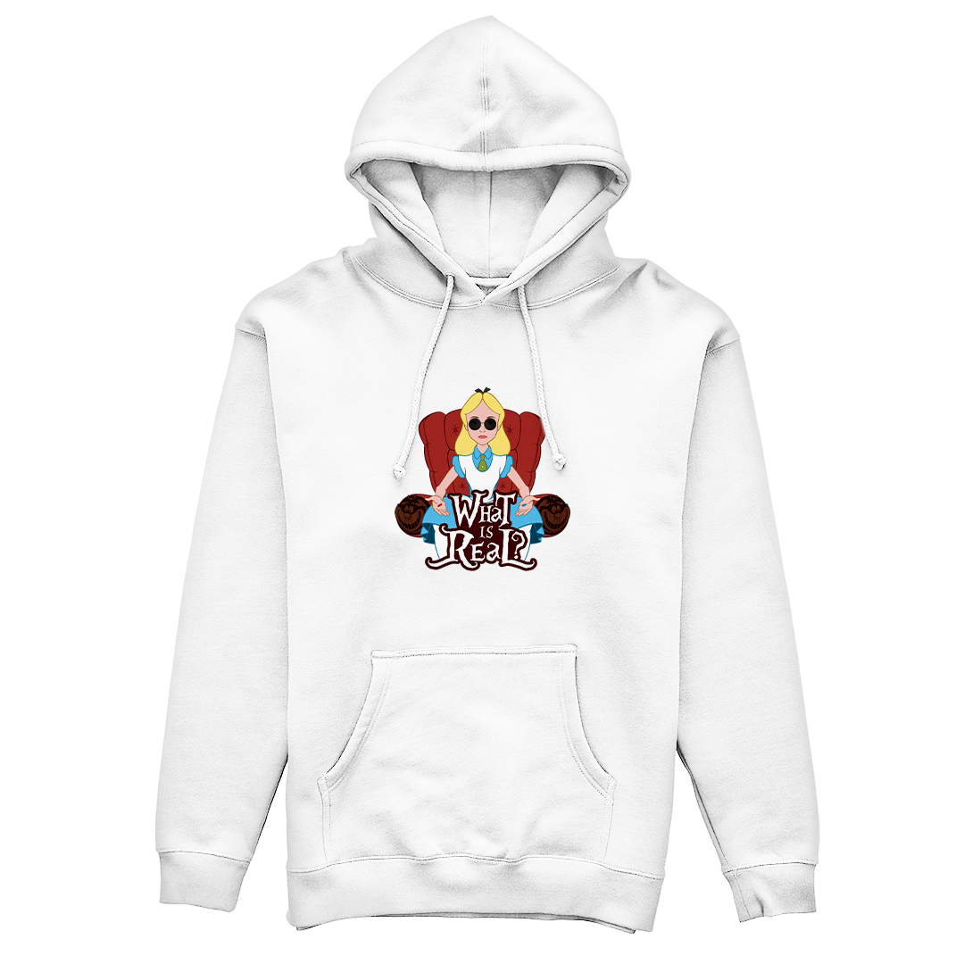 Explore o fascinante encontro entre Alice no País das Maravilhas e Matrix com nossa estampa exclusiva "What is Real?" da Geek Win. Nesta criação única, veja Alice incorporando elementos visuais de Morpheus, sentada em sua icônica poltrona, segurando as emblemáticas pílulas azul e vermelha. Descubra um estilo cativante e questione a realidade com essa fusão inusitada.