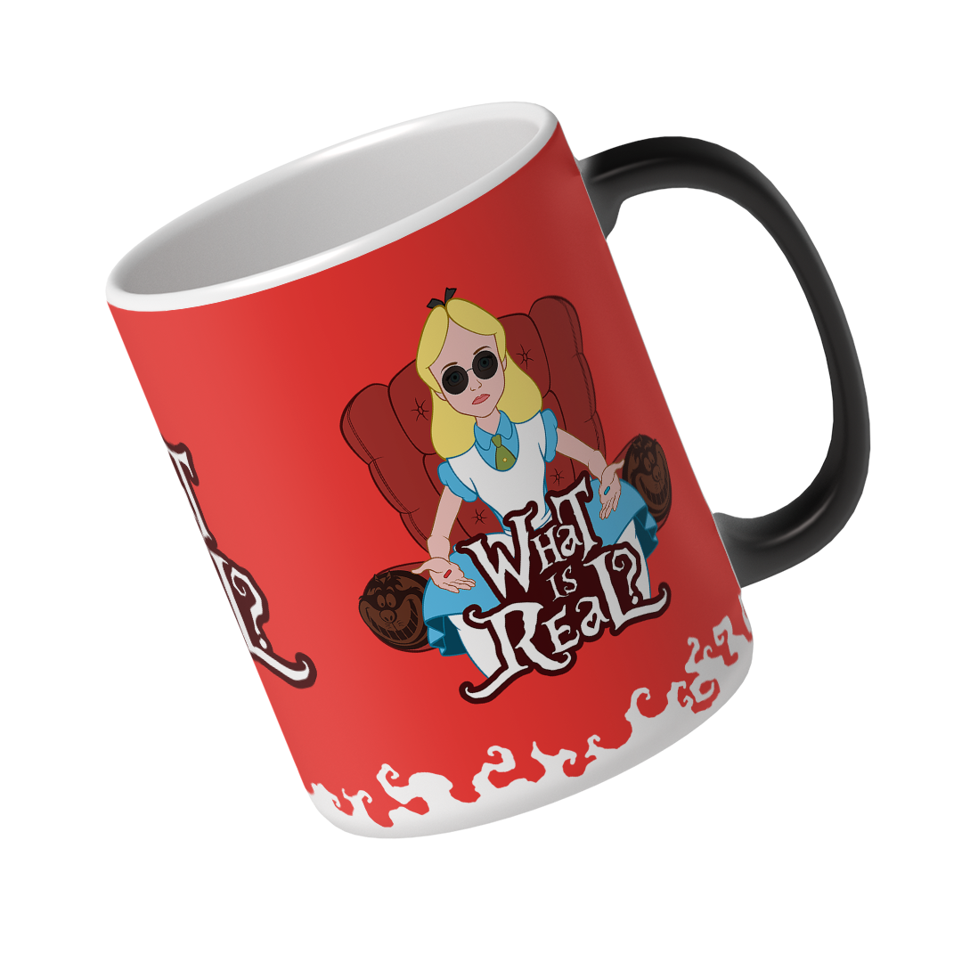 Explore o fascinante encontro entre Alice no País das Maravilhas e Matrix com nossa estampa exclusiva "What is Real?" da Geek Win. Nesta criação única, veja Alice incorporando elementos visuais de Morpheus, sentada em sua icônica poltrona, segurando as emblemáticas pílulas azul e vermelha. Descubra um estilo cativante e questione a realidade com essa fusão inusitada.